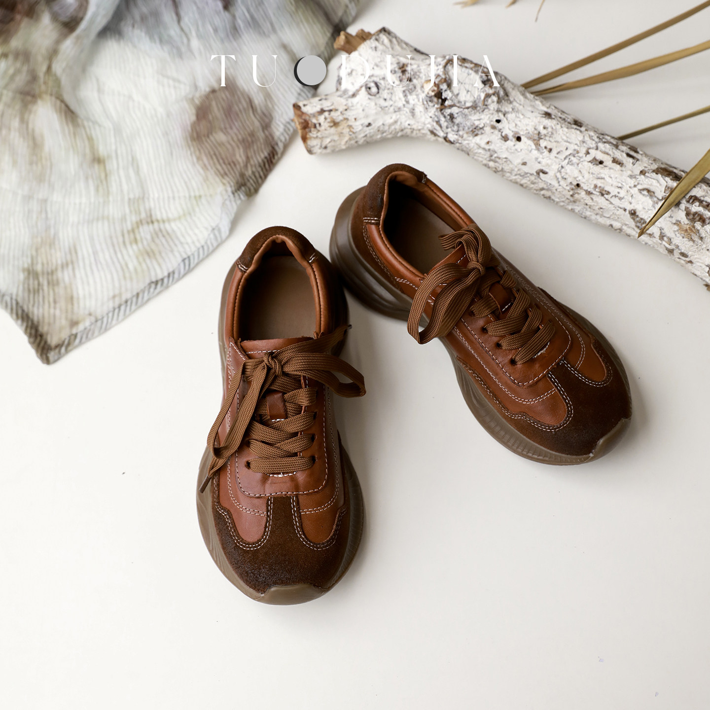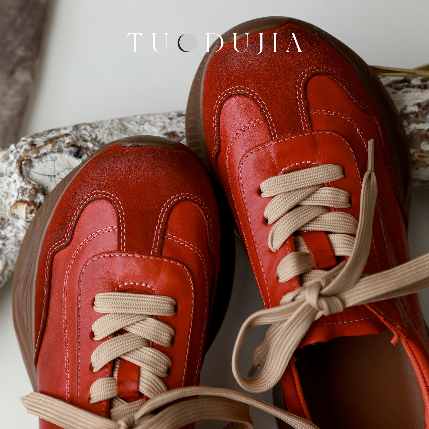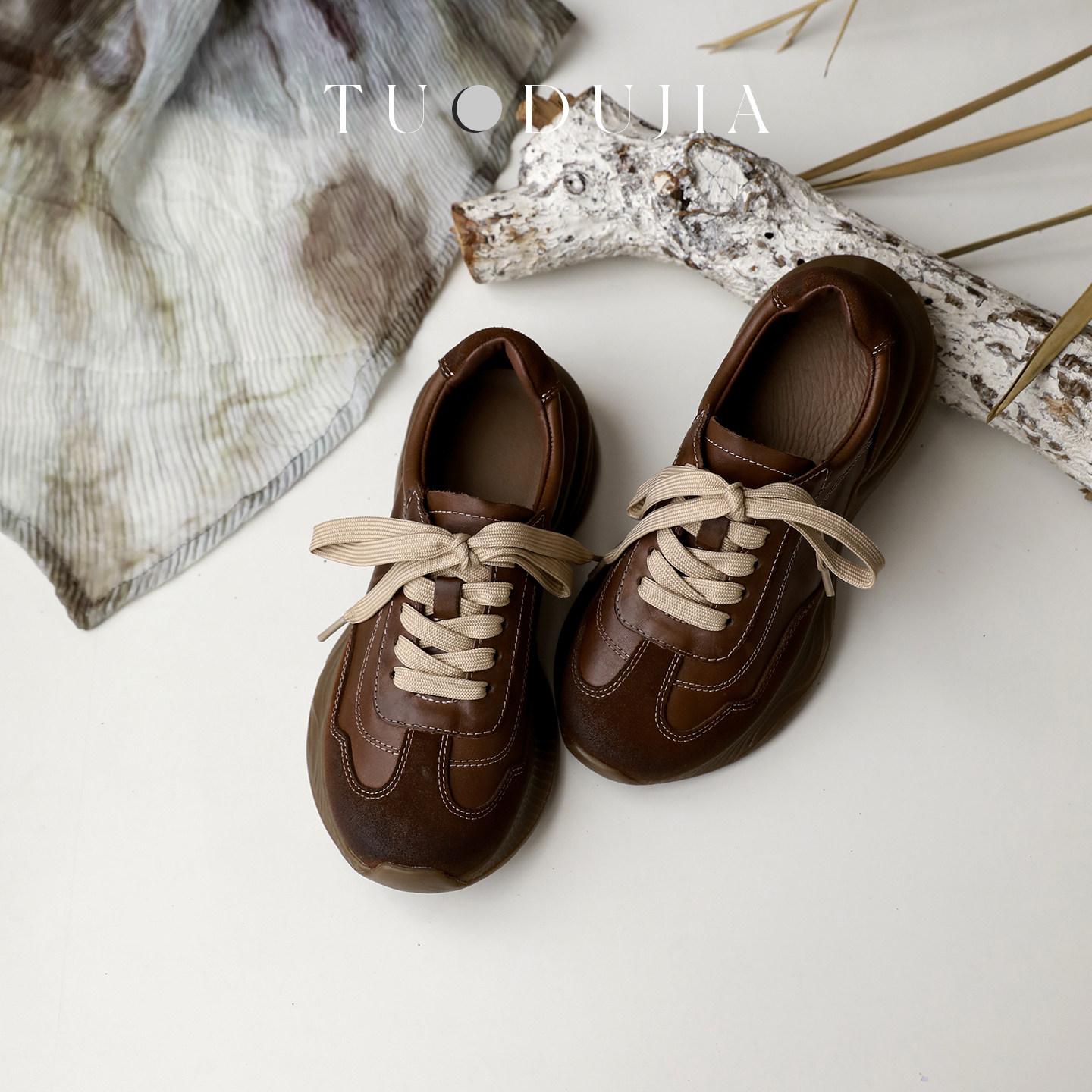 脱毒家 牛皮系带低跟女鞋真皮复古休闲平底鞋舒适质感单鞋新款女