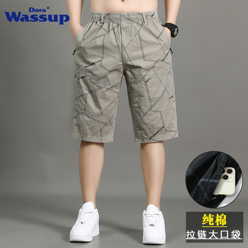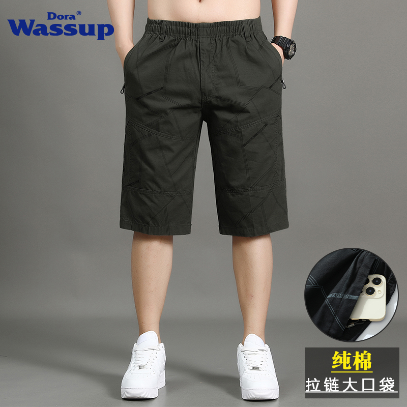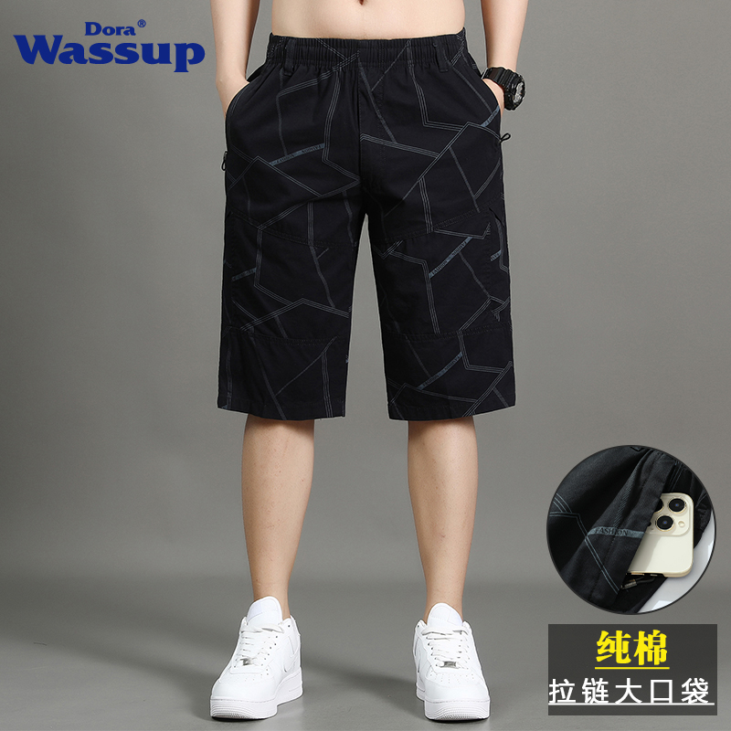WASSUP纯棉七分裤男夏季透气直筒宽松短裤中青年居家休闲中裤外穿