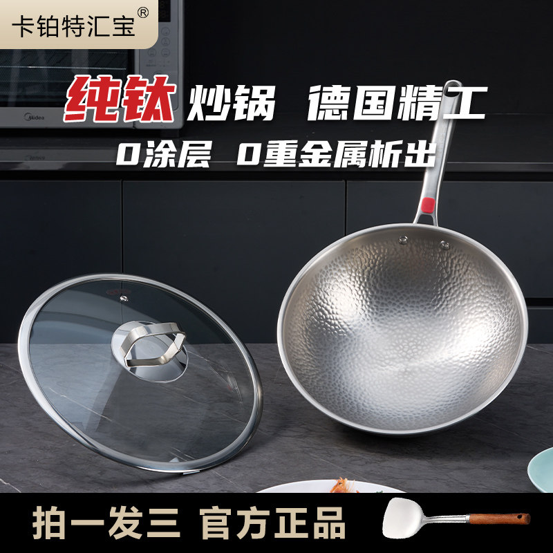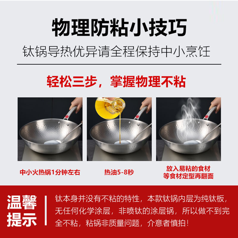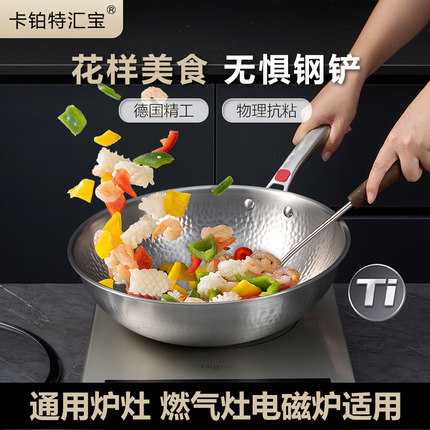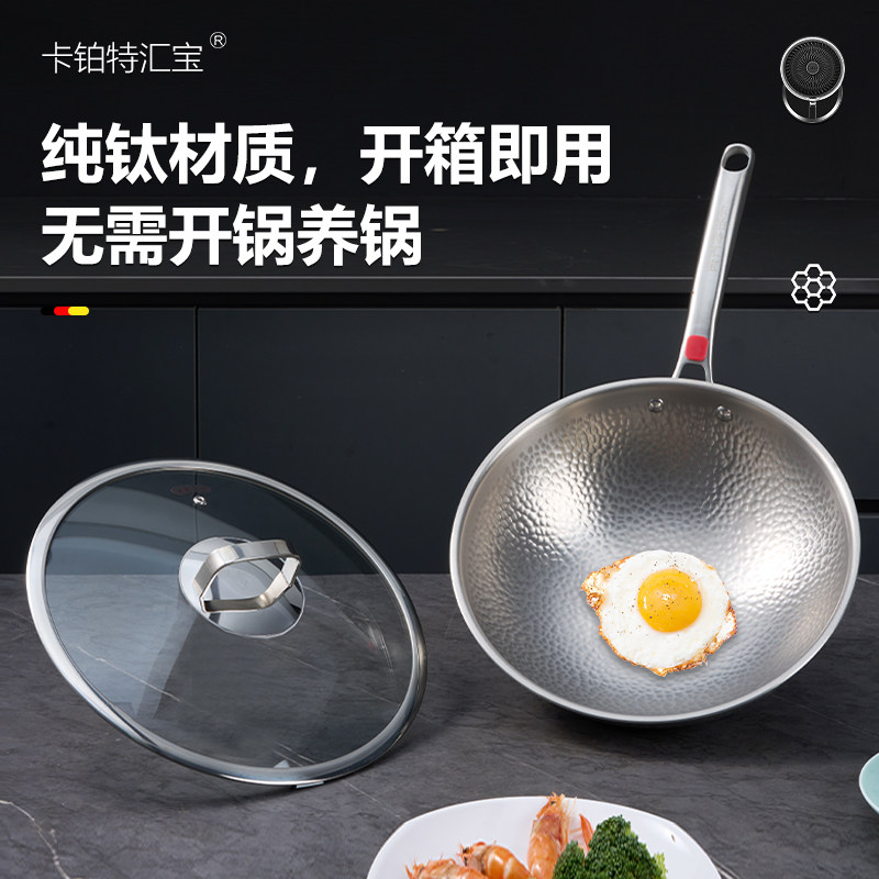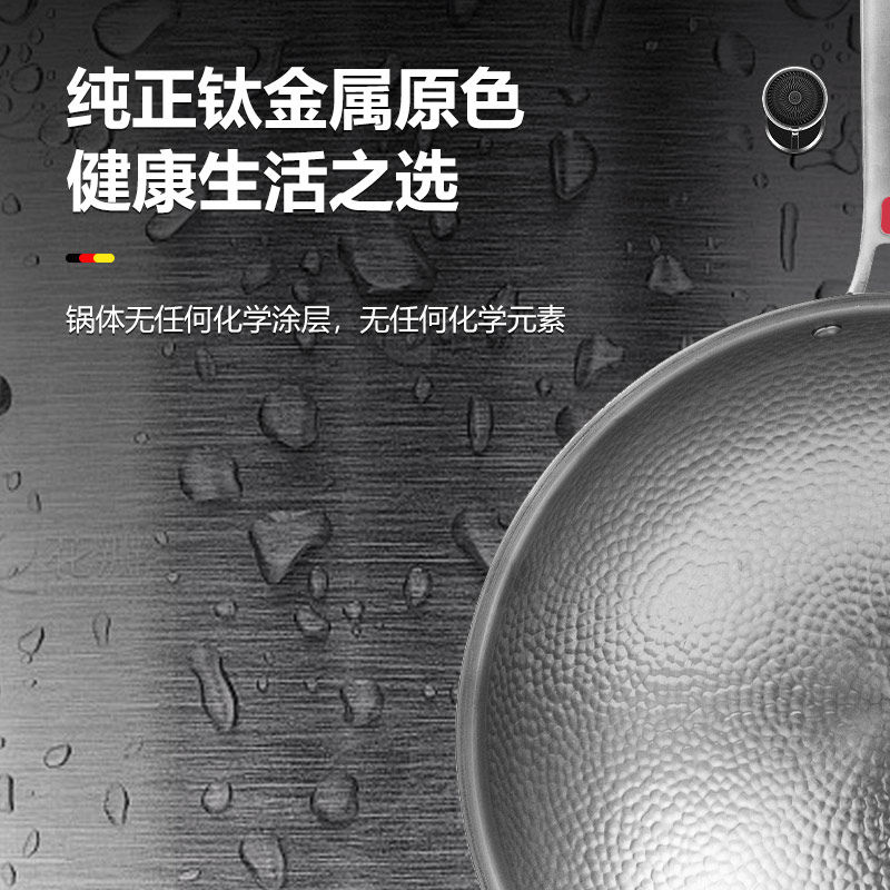 汇宝家用手工锻打纯钛炒锅无涂层