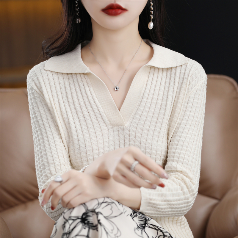 POLO领七分袖针织衫女翻领套头中线棉线衫短款纯棉半袖毛衣薄款韩