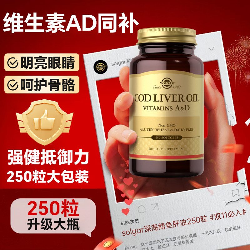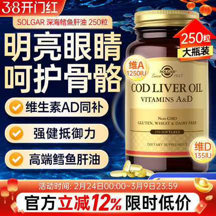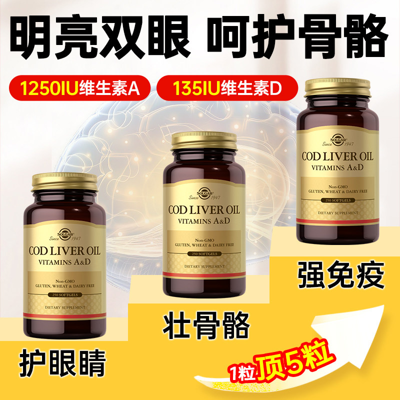 美国进口深海鳕鱼肝油官方旗舰店正品维生素AD胶囊成人中老年护眼