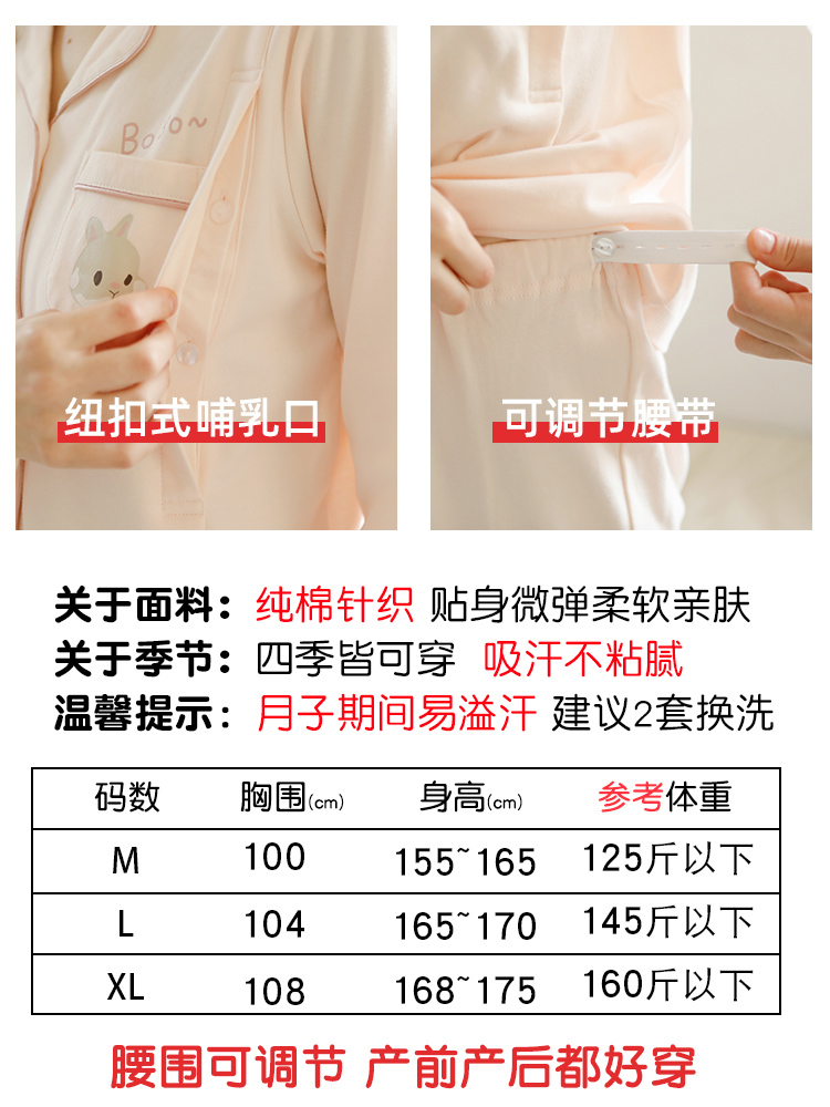 家时光月子服纯棉秋冬产后全棉吸汗孕妇冬哺乳睡衣外穿产妇家居服
