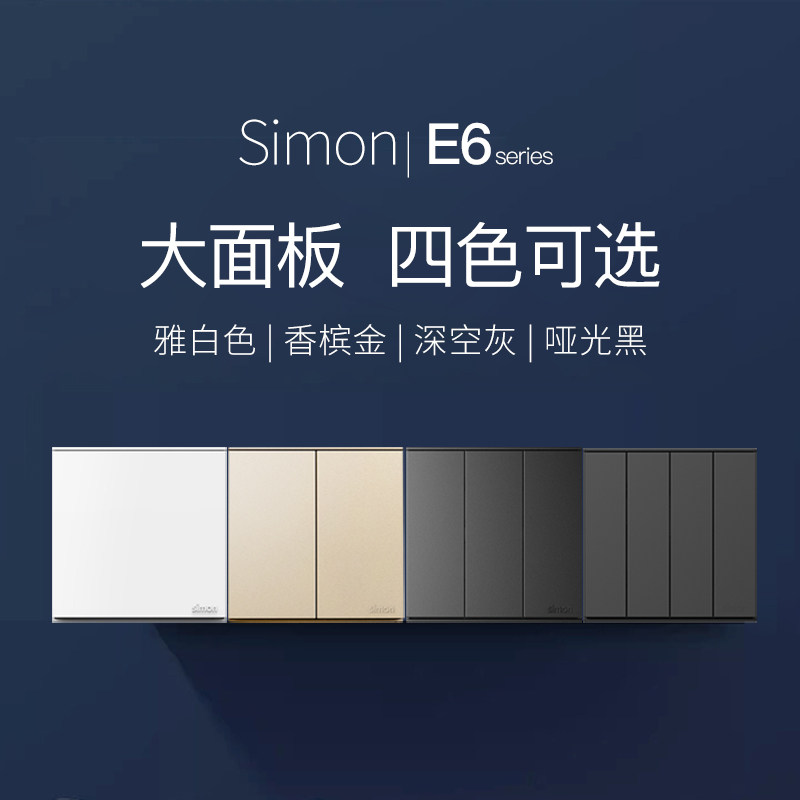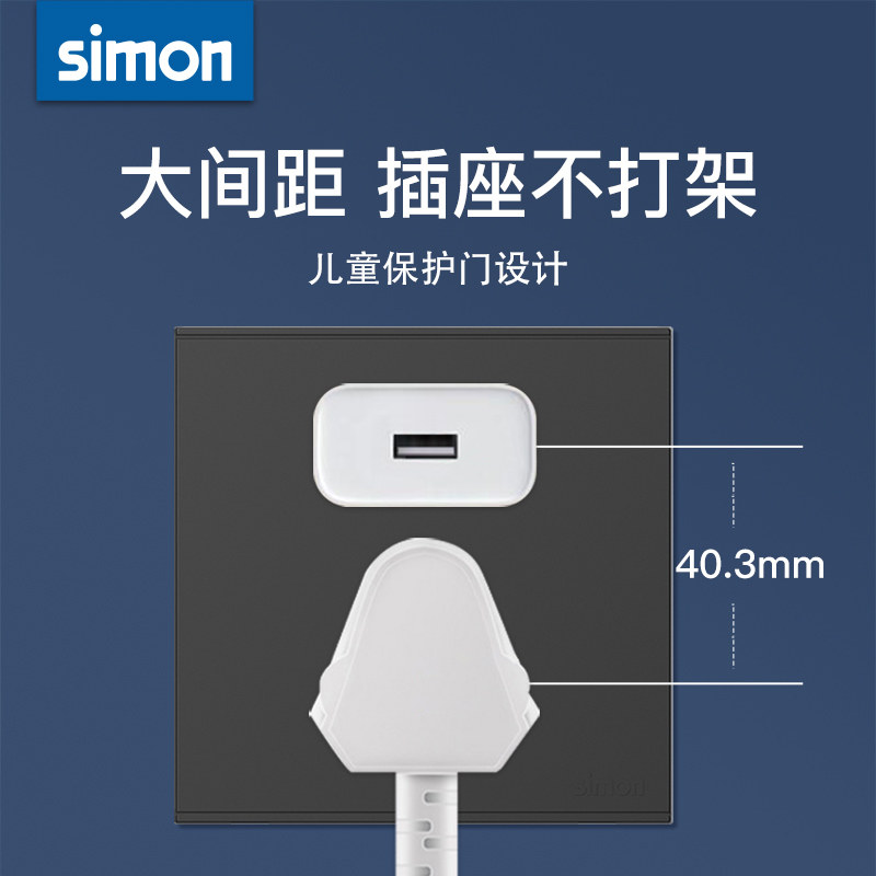 西蒙插座开关官方旗舰店官网E6系列一开五孔USB86型黑色面板家用