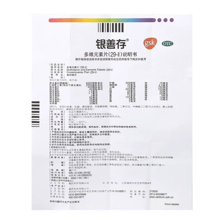 银善存多维元素片(29)30片50岁以上成人中老年人维生素和矿物质