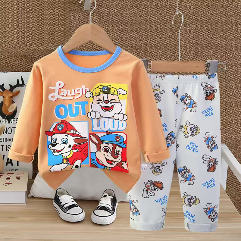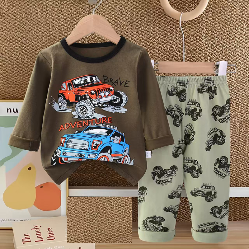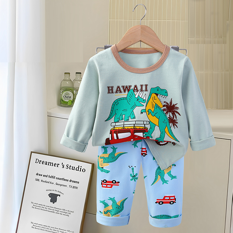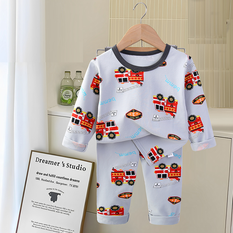 秋冬季儿童睡衣纯棉男童挖掘机推土机卡车秋衣秋裤男孩工程车衣服