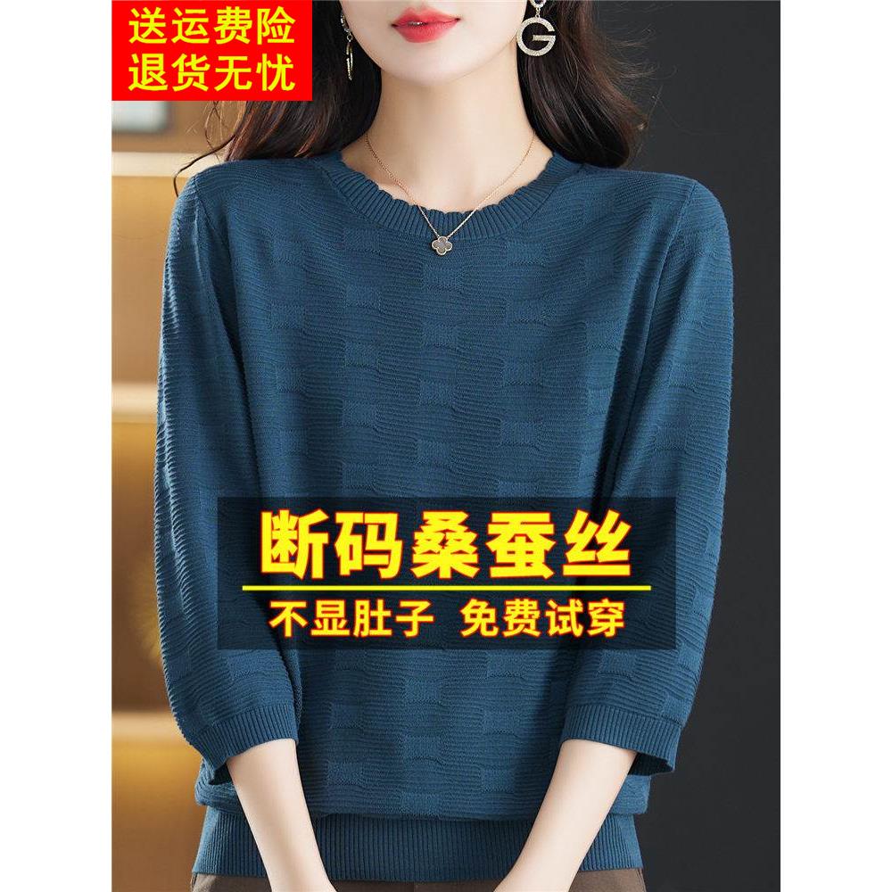 春秋新款七分袖桑蚕丝女上衣早秋时尚中袖t恤小衫妈妈打底针织衫