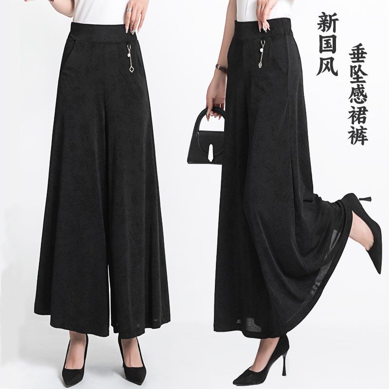 国风阔腿裤夏季垂坠感裙裤薄款中老年妈妈气质九分裤高腰百搭洋气
