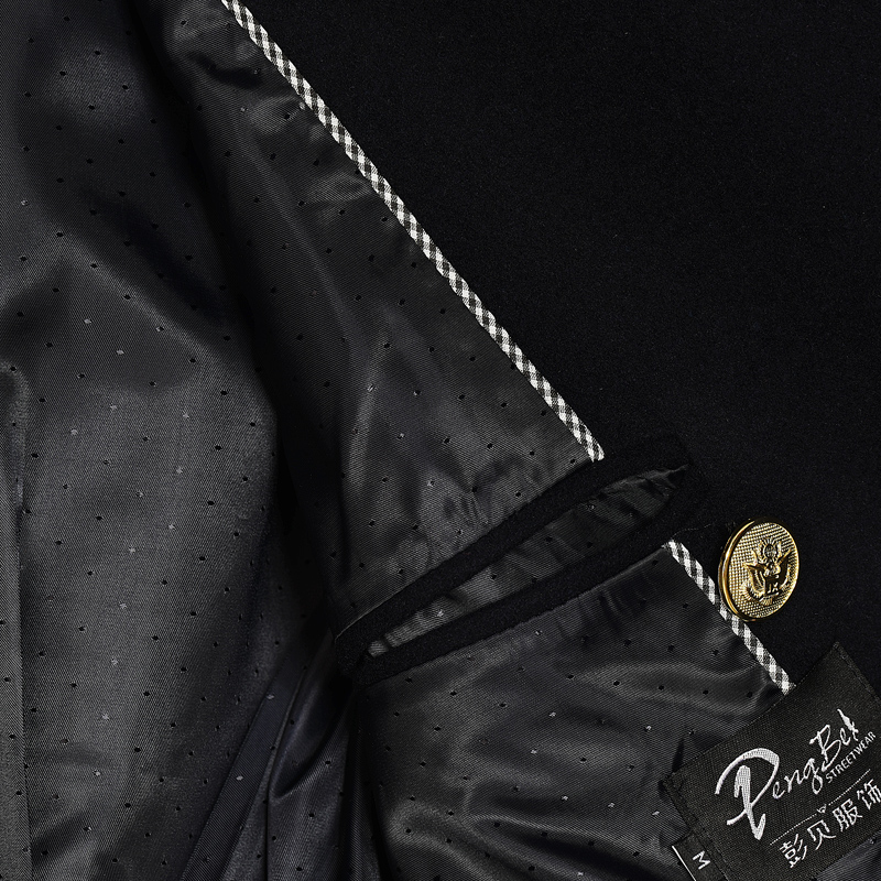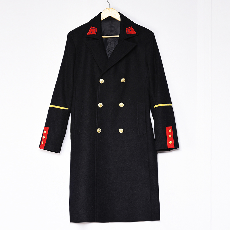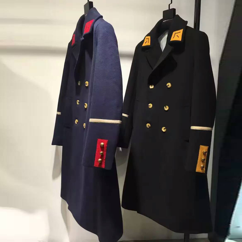 冬季男休闲风衣呢子大衣中长款修身双排扣金属线刺绣毛呢外套7007