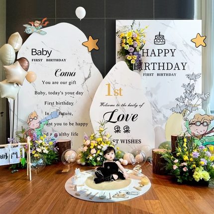 周岁礼兔宝宝生日布置装饰套装kt板背景墙男女孩抓周仪式感道具