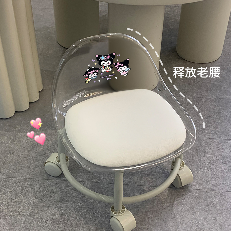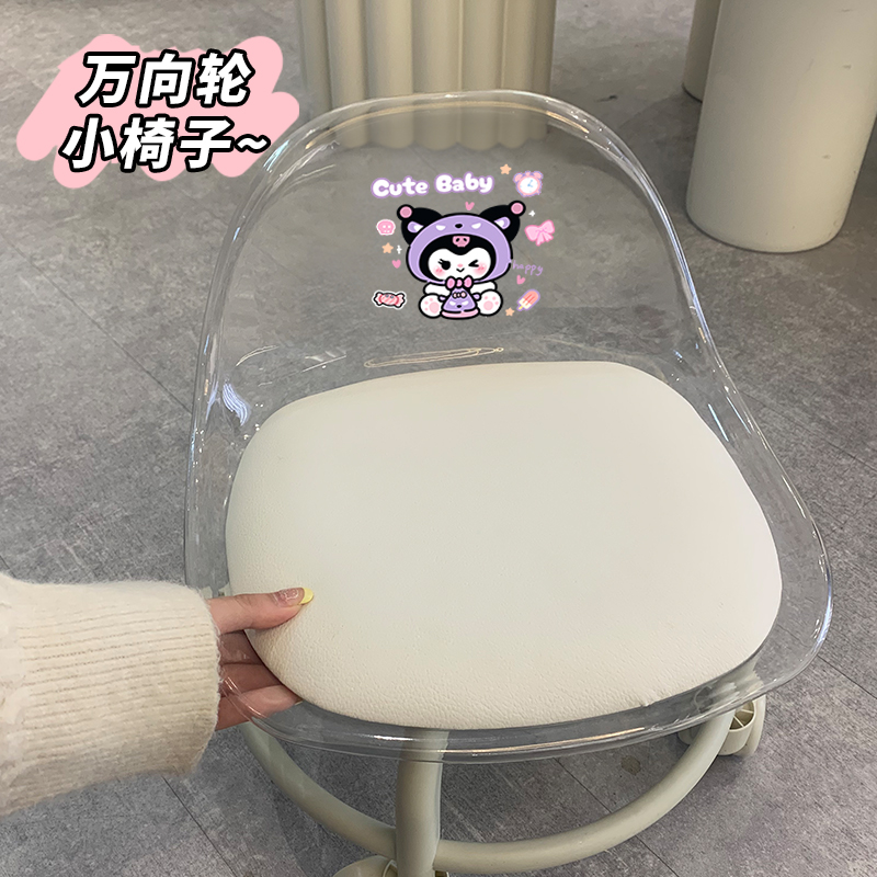 库洛米万向轮小凳子家用滑轮矮凳移动小型靠背板凳儿童卡通