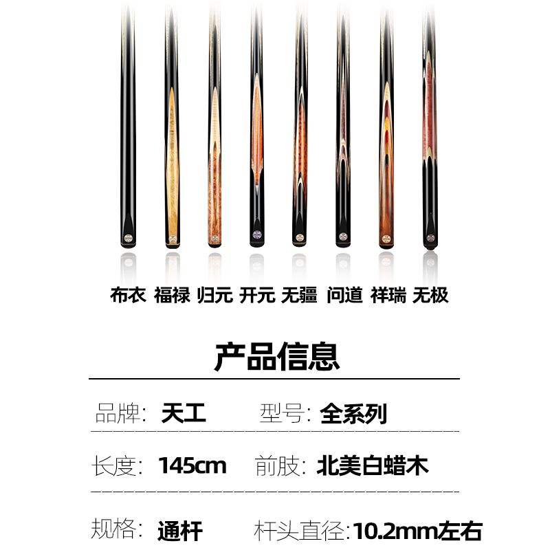 恒艺天工布衣祥瑞福禄开元无极归元元疆问道台球杆小头天工球杆