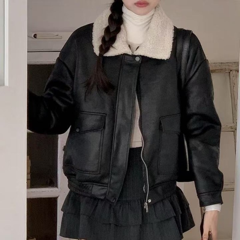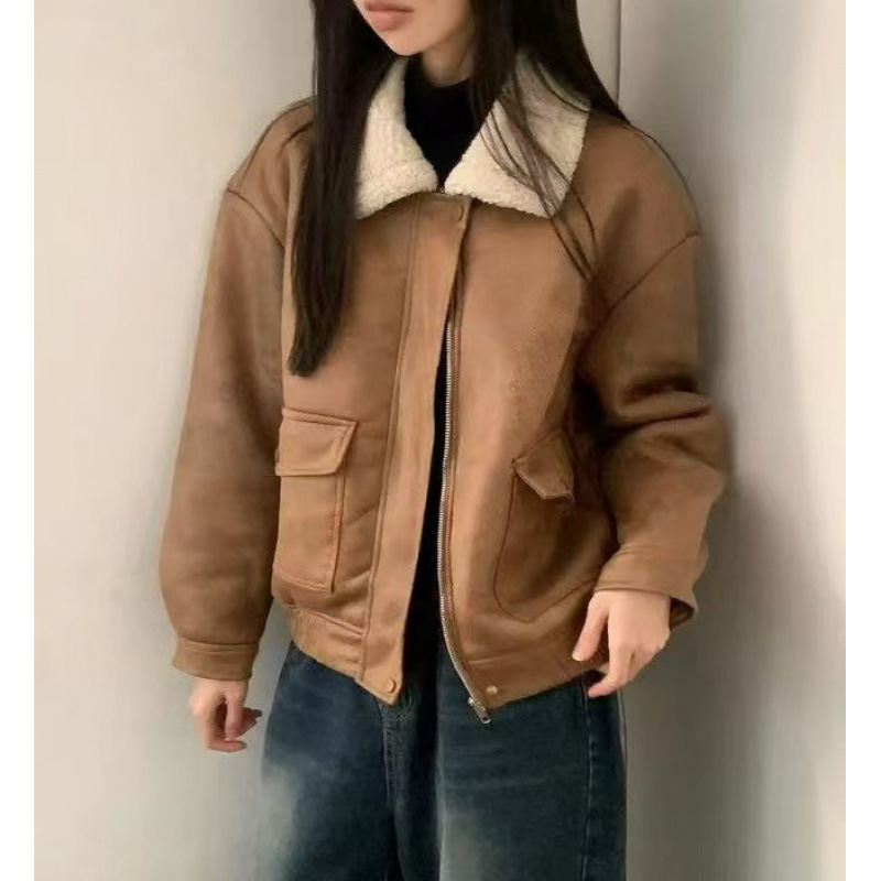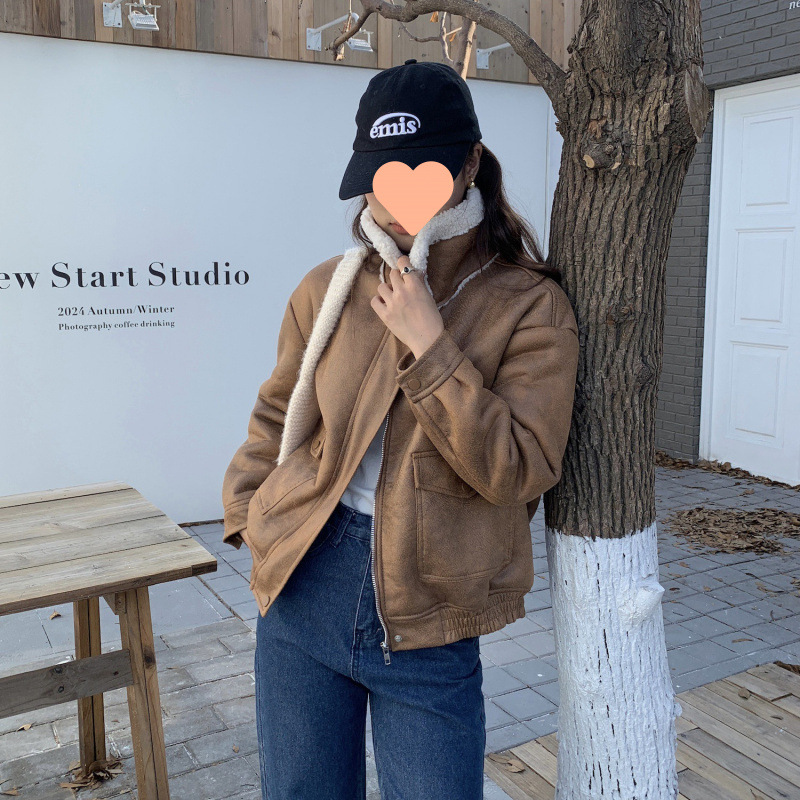 己入库韩国东大门2025仿皮毛一体鹿皮绒复合羊羔毛外套棉衣