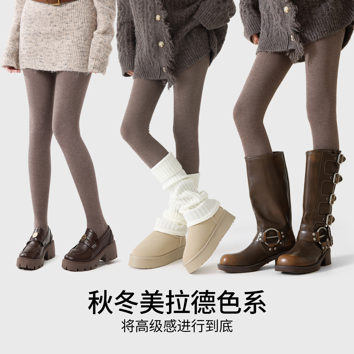 美拉德穿搭咖色羊毛打底裤女冬季