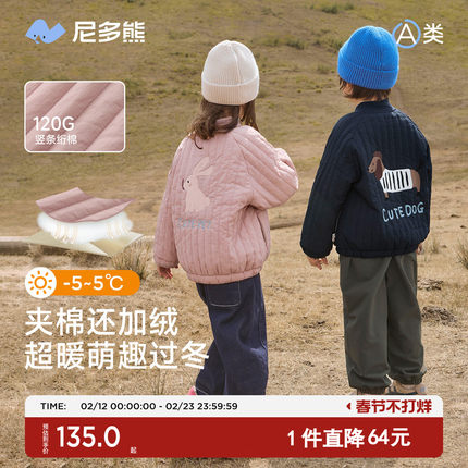 尼多熊秋冬新款儿童夹棉棒球服男女童保暖外套宝宝加厚上衣