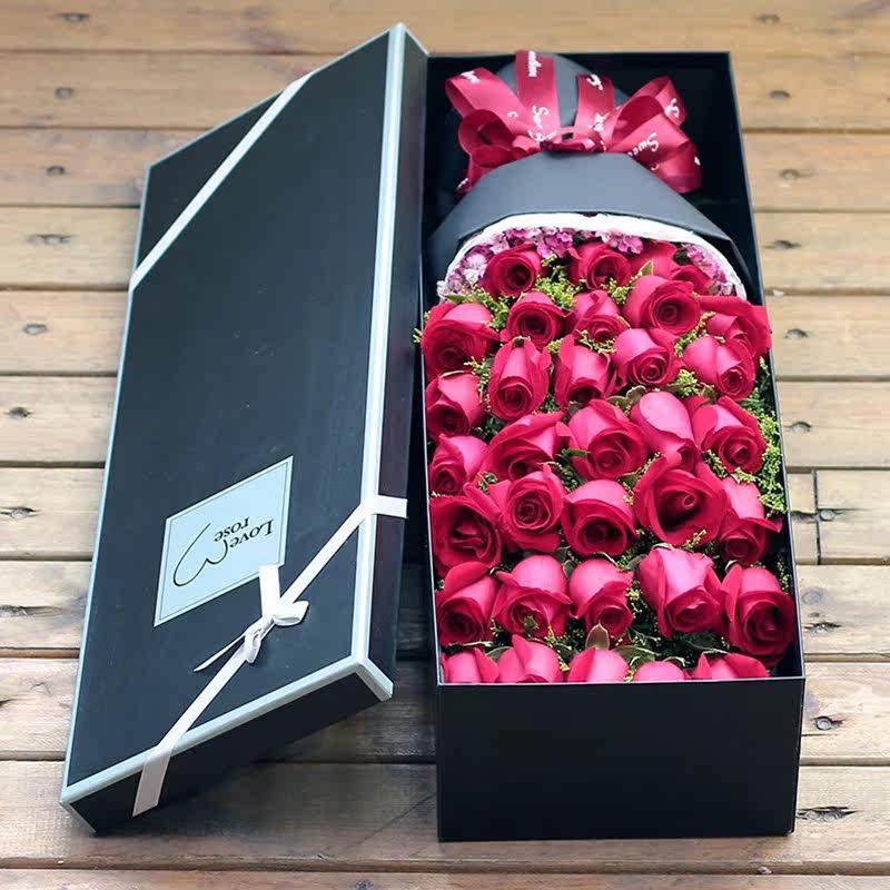 绍兴鲜花速递同城红香槟玫瑰礼盒花束越城柯桥花店生日礼物送闺蜜