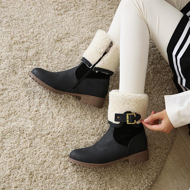 冬新款加绒雪地靴低跟防滑圆头短靴子女皮带扣大码复古帅气马丁靴