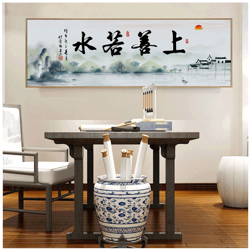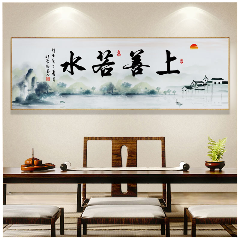 上善若水书法字画装饰画中式风格茶室办公室客厅沙发背景墙挂画