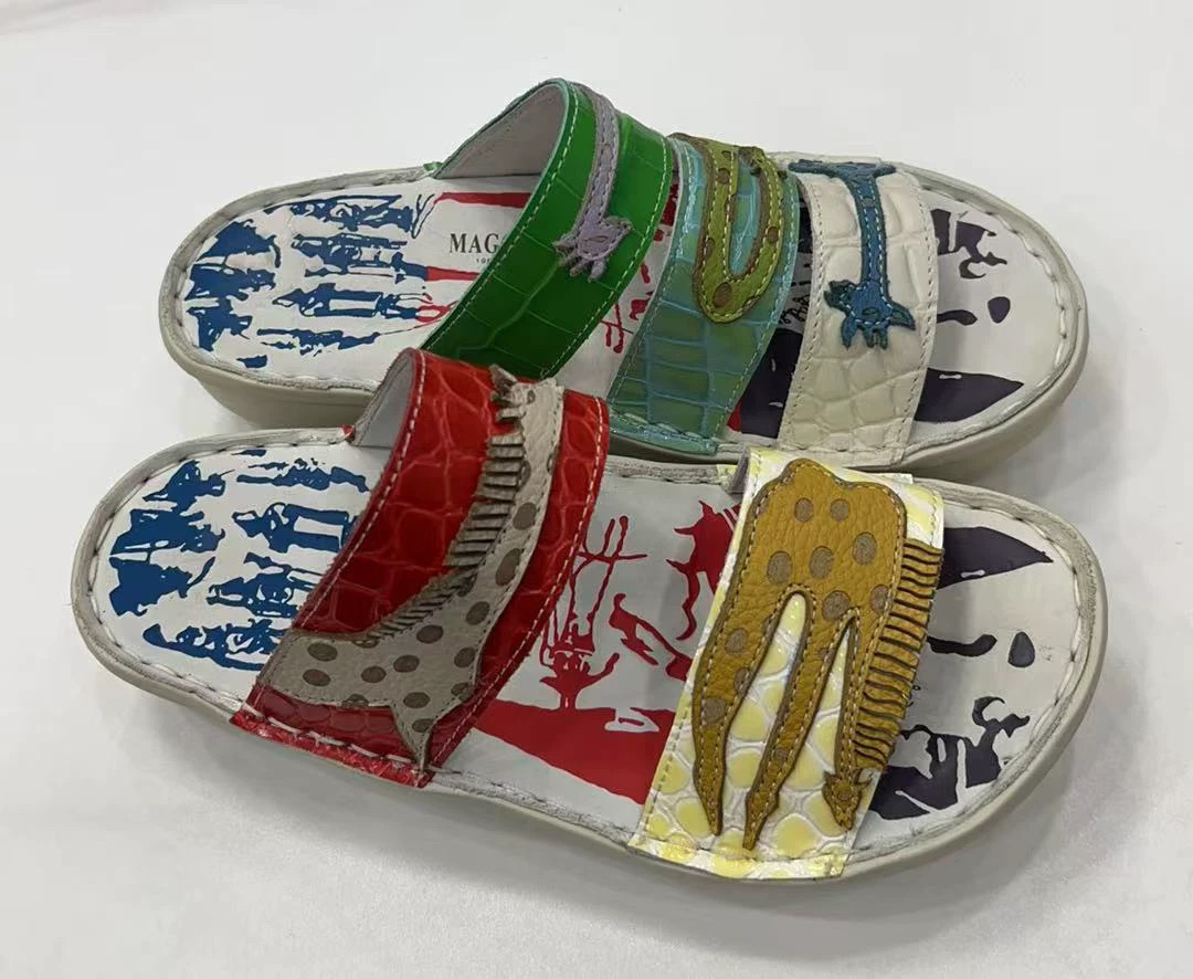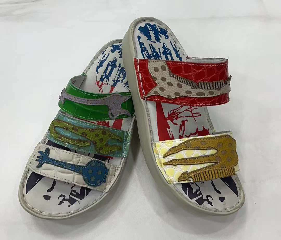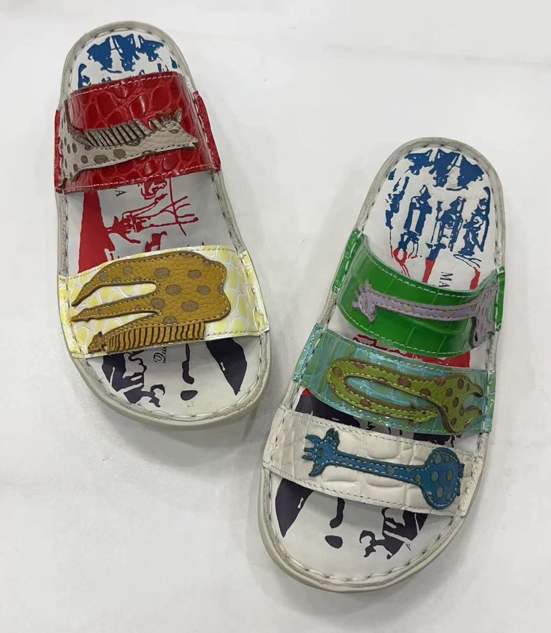 2025夏新款厚底凉鞋女外穿百搭休闲鞋真鳄鱼纹皮手工气垫缝制拖鞋