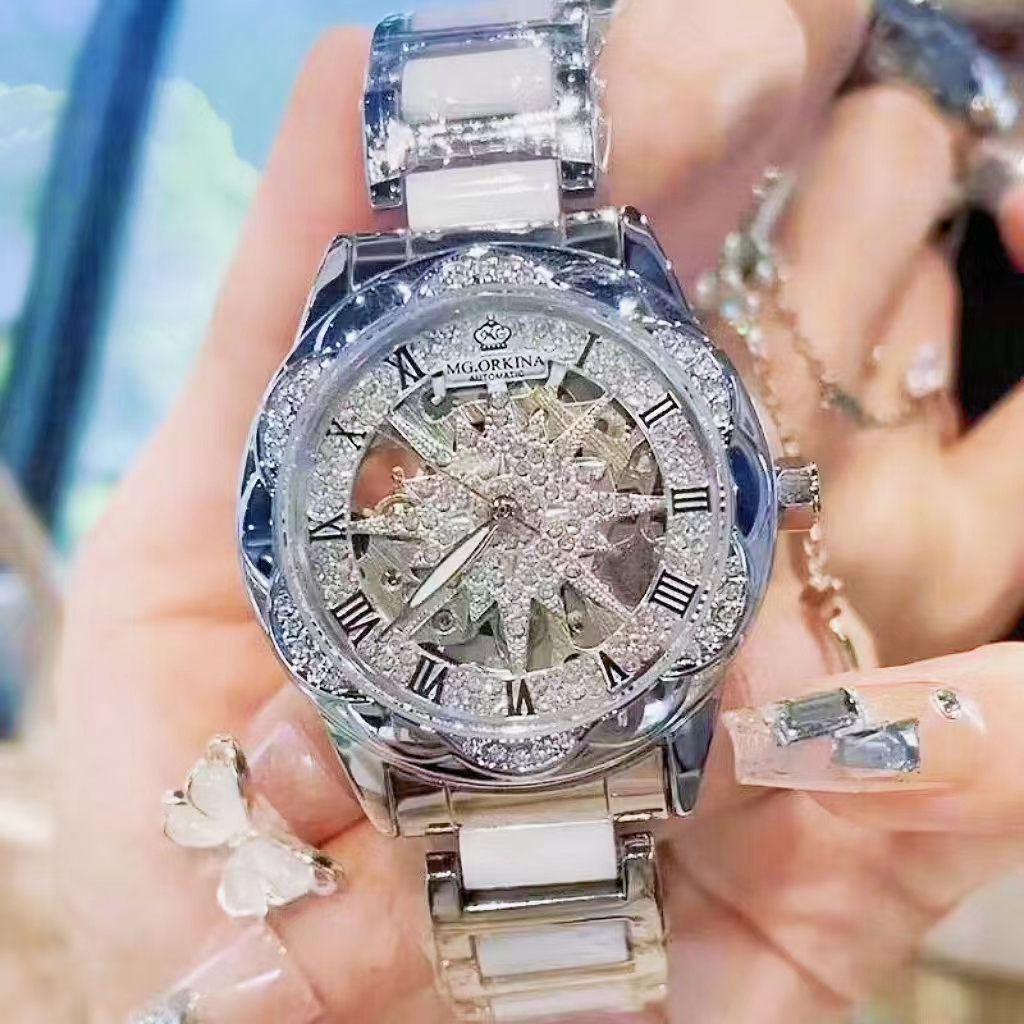 进口机芯全自动机械表镂空镶钻满天星轻奢高级时尚女士手表网红女