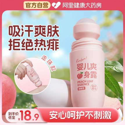 润本婴儿爽身露桃子水新生宝宝热痱子水吸汗爽身粉儿童止汗滚珠