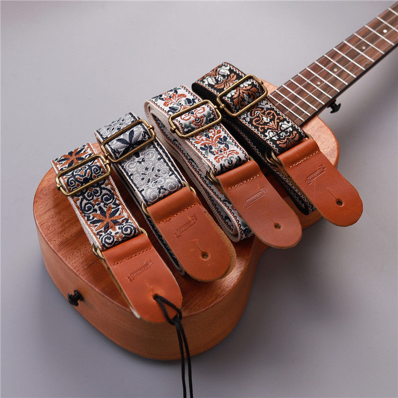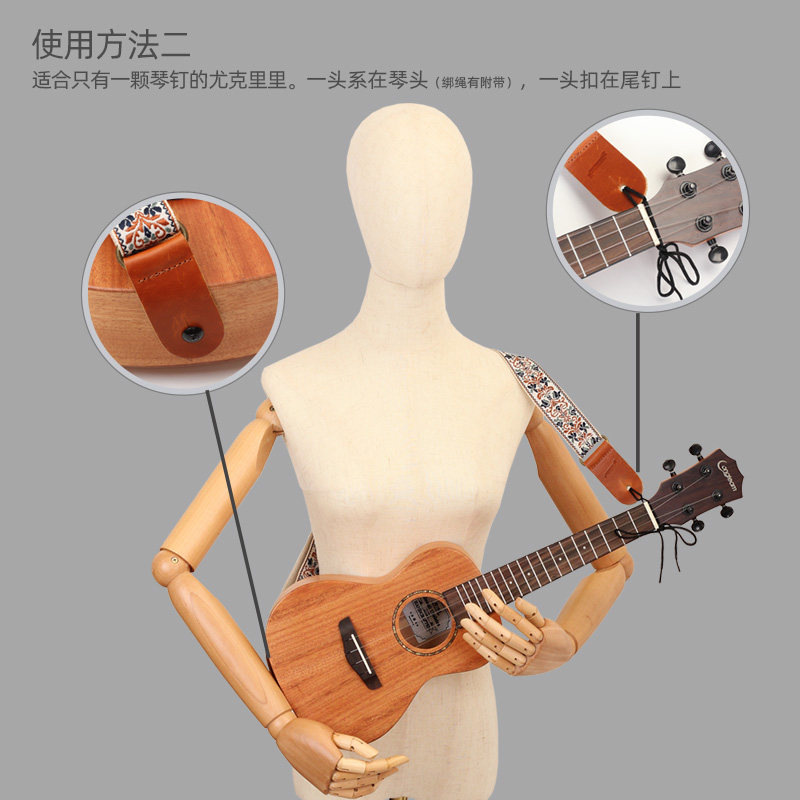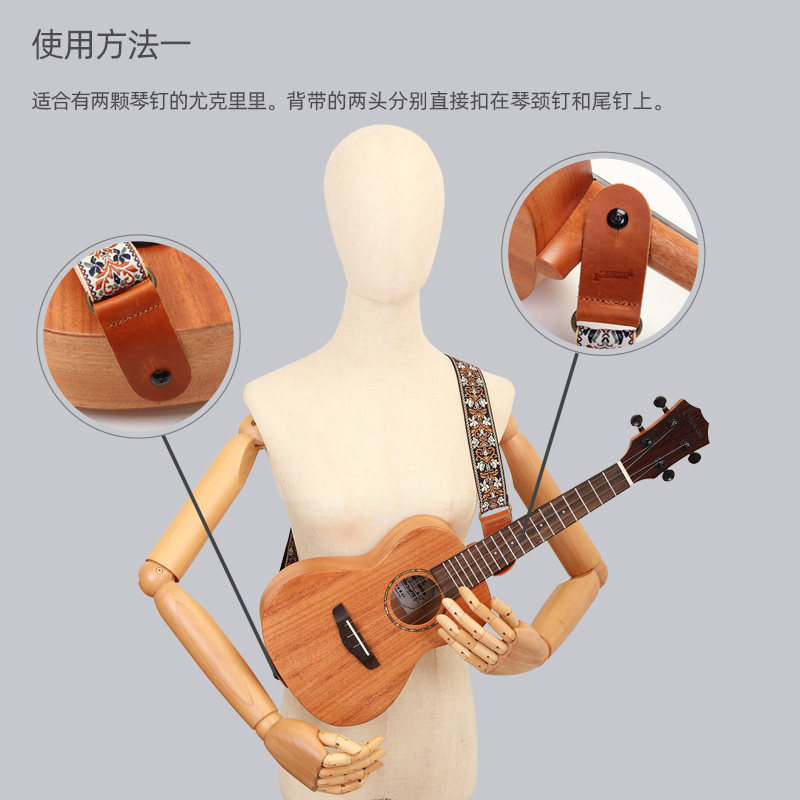 朗汀刺绣风格尤克里里背带乌克丽丽斜跨琴带含尾钉ukulele琴带