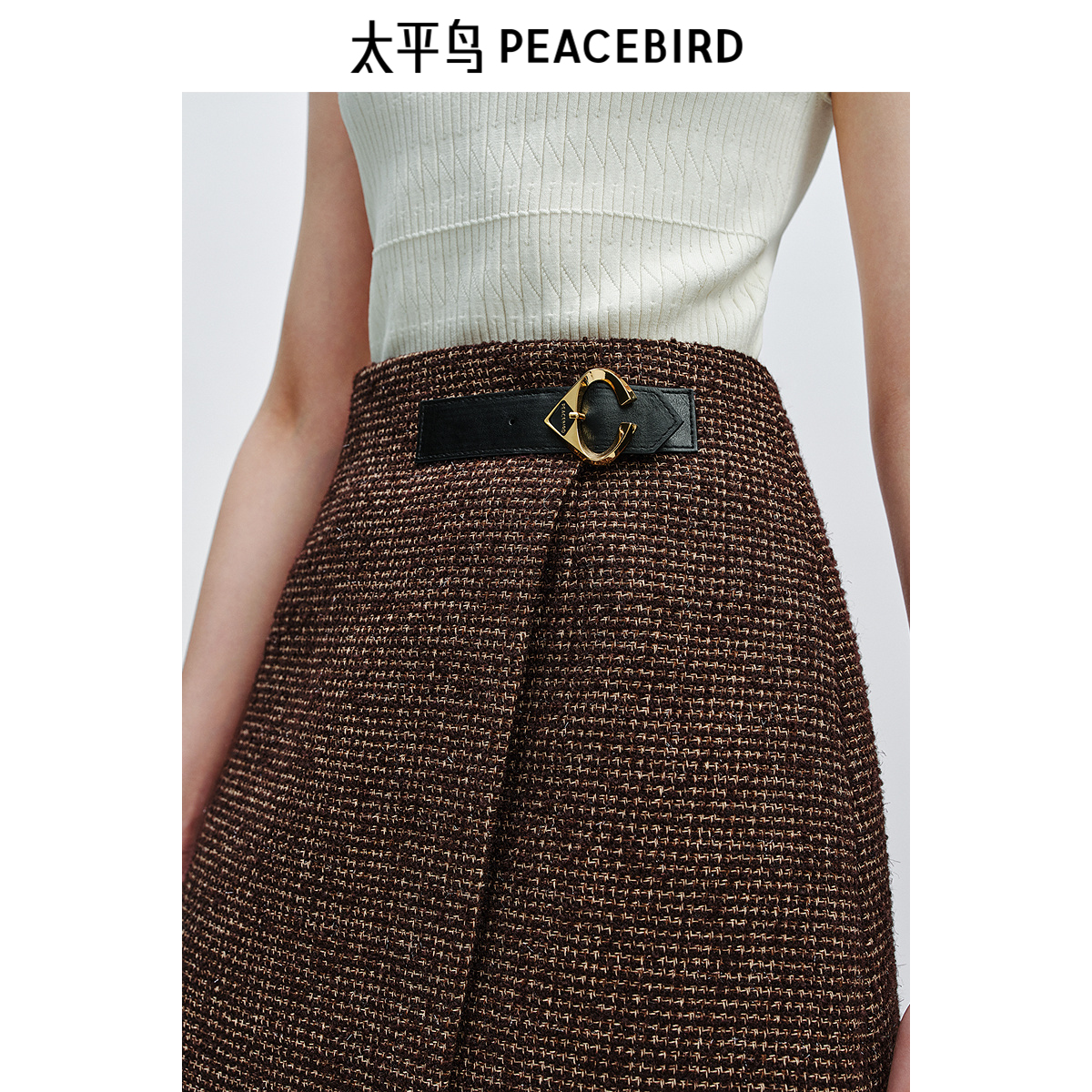 太平鸟粗花呢短款时尚半身裙