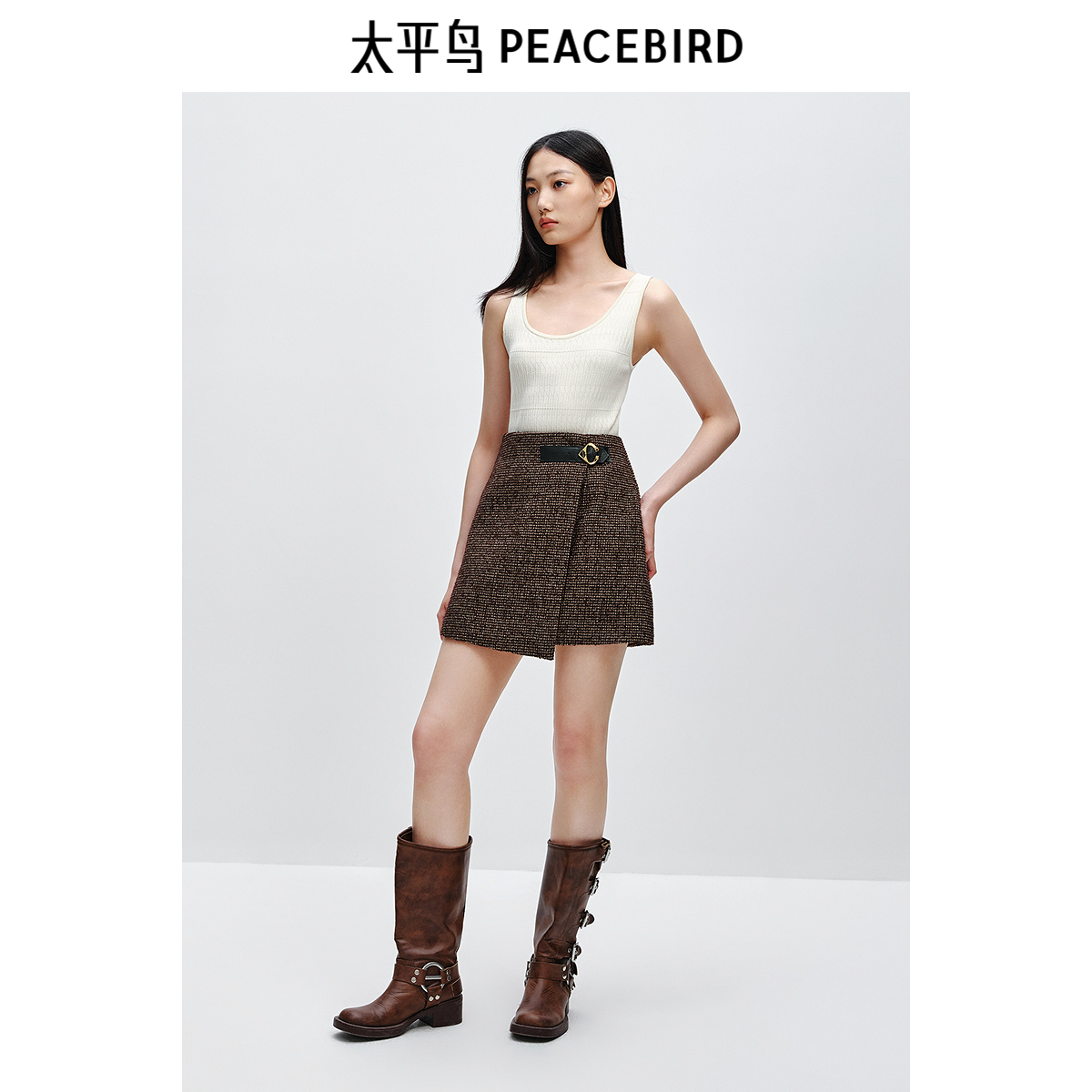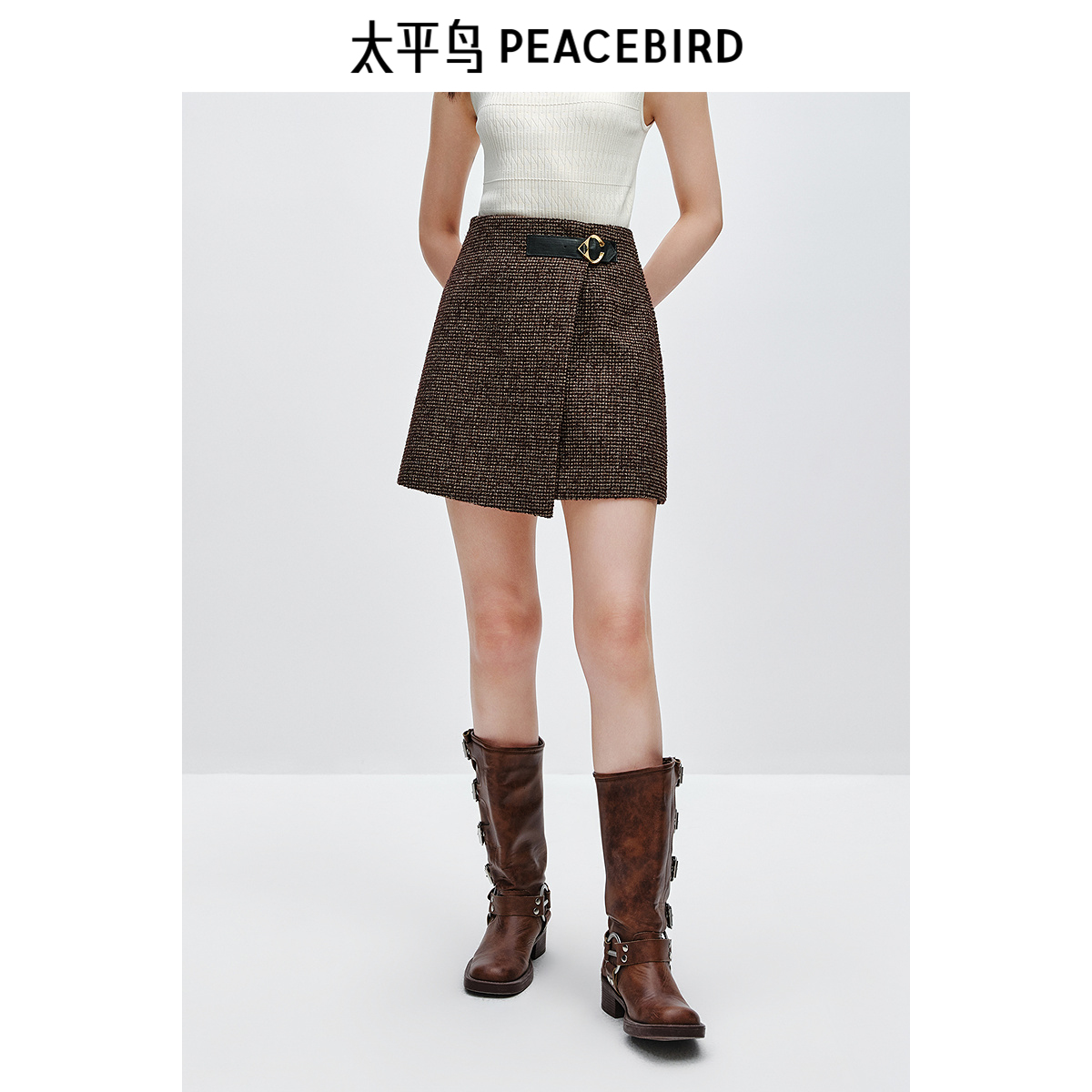 太平鸟粗花呢短款时尚半身裙24冬季新款女士品质羊毛精致短裙裙子