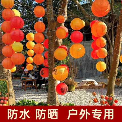 新年元宵节装饰室外防雨绸布灯笼串树上挂饰户外防水防晒折叠灯笼