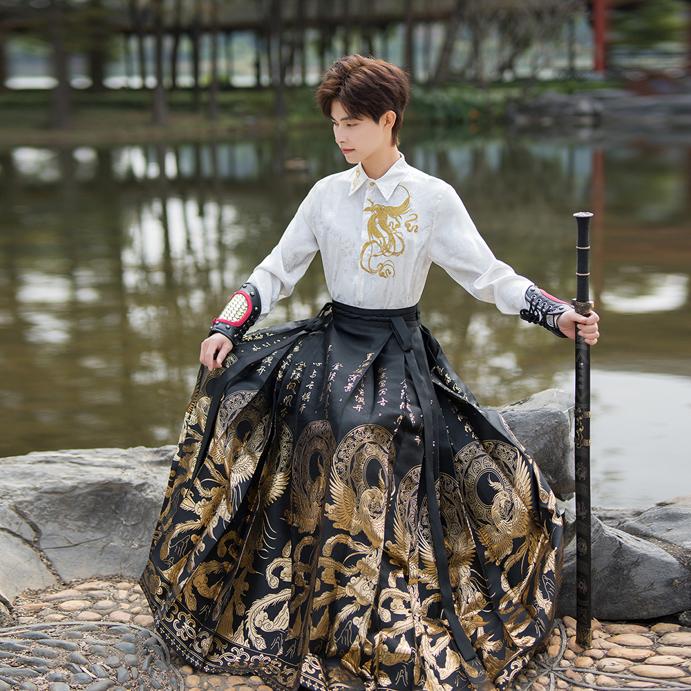 新中式国风马面裙男款古风汉服男士帅气学生古装男生上衣衬衫套装