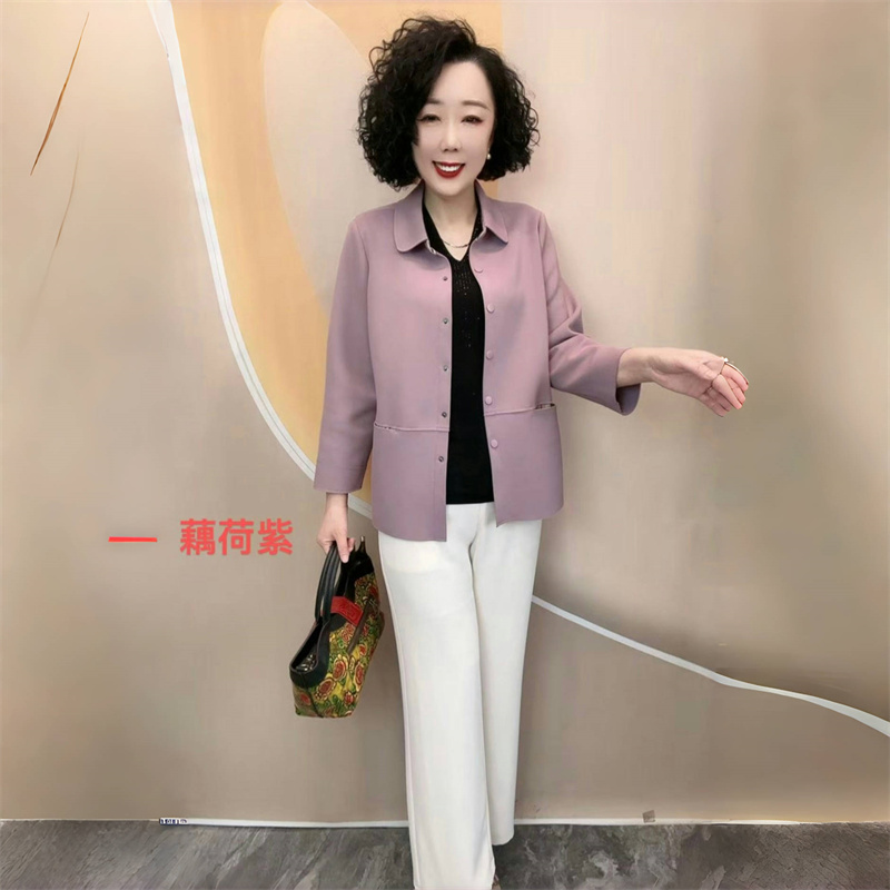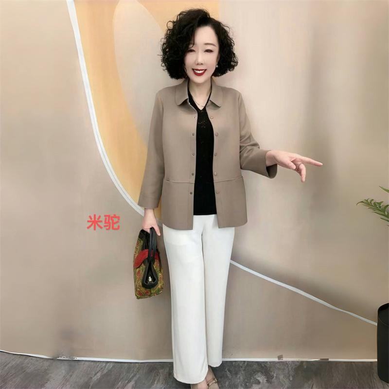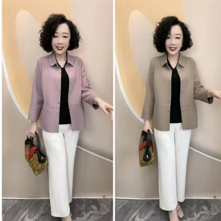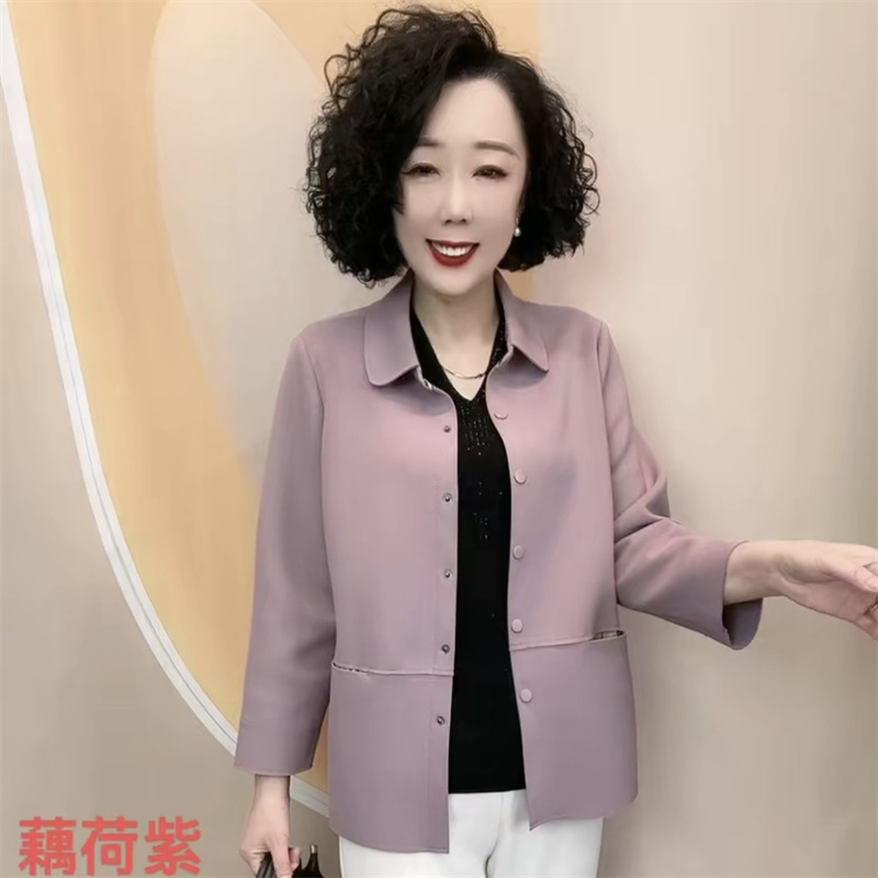 2025春秋新款宽松显瘦妈妈装翻领休闲衬衣弹力大码开衫薄款外套女