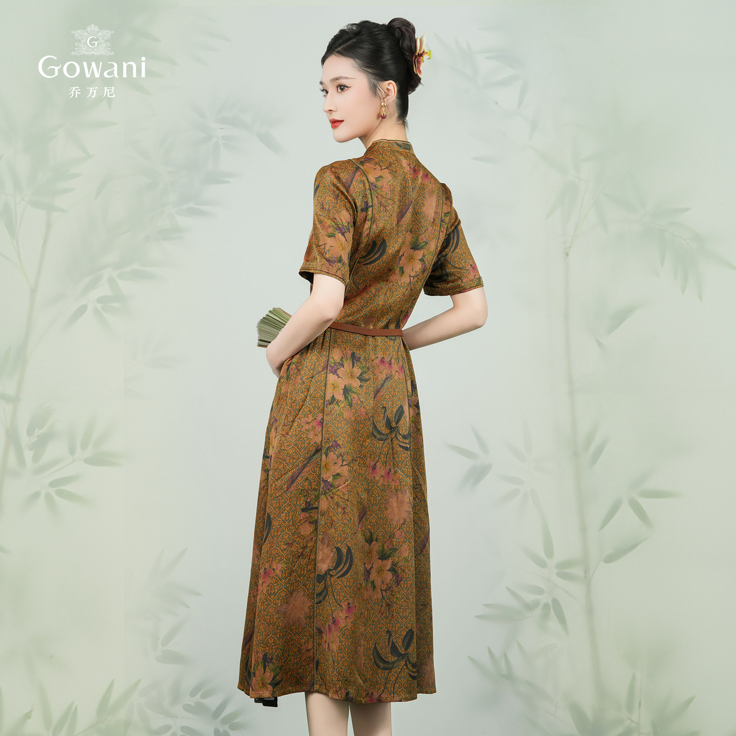乔万尼2025夏新品19mm珍珠缎香云纱桑蚕丝旗袍连衣裙EM2E722