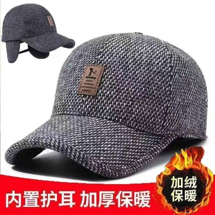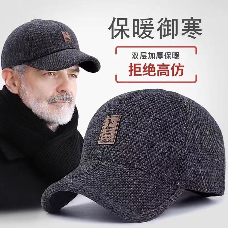 男士帽子冬天中老年毛呢棒球帽秋冬季休闲保暖护耳鸭舌帽男护耳暖
