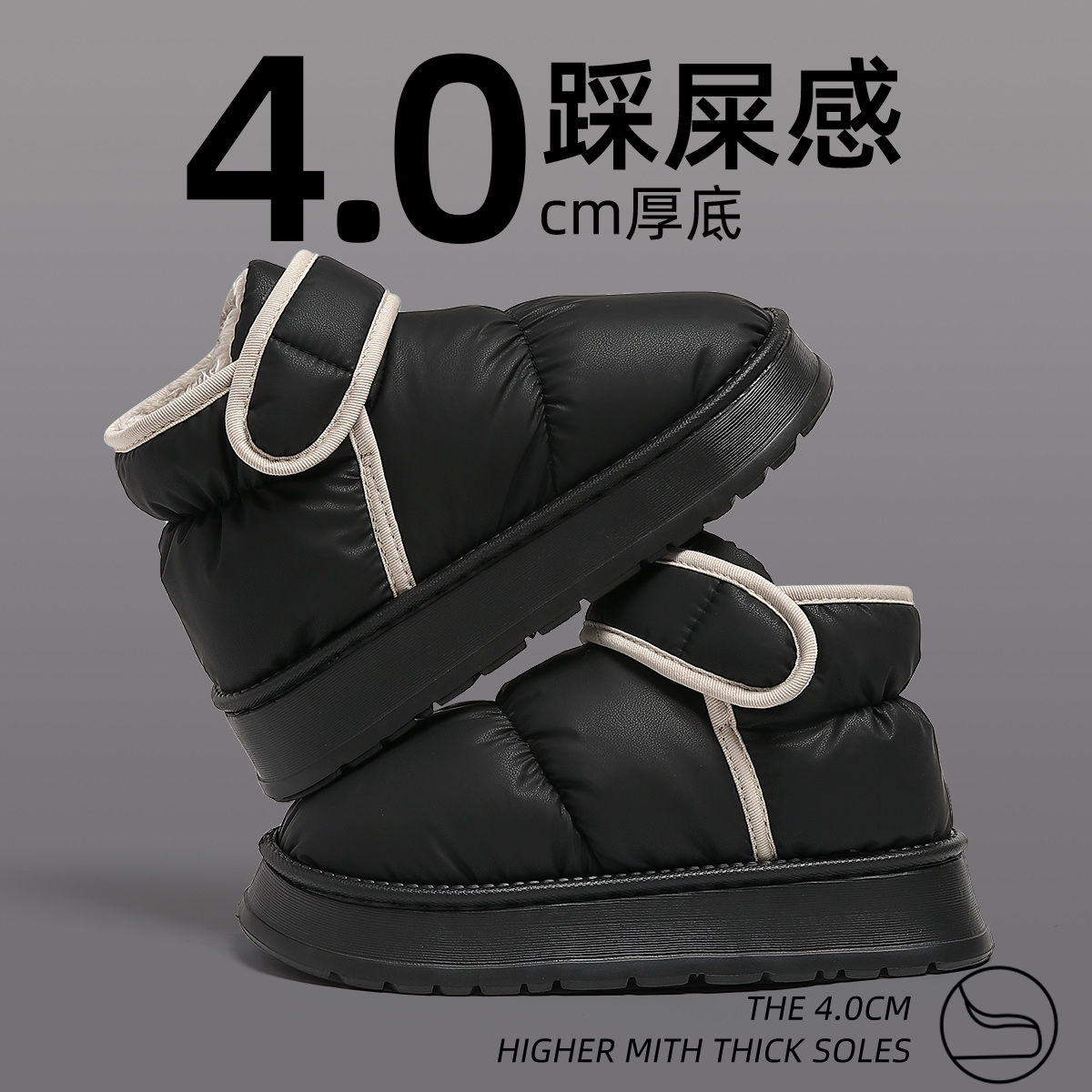 羽绒布防水棉拖鞋男款冬季2025新款厚底外穿居家加绒保暖包跟棉鞋