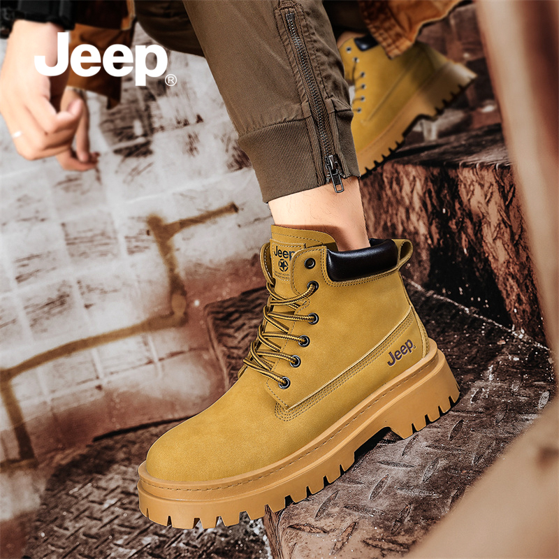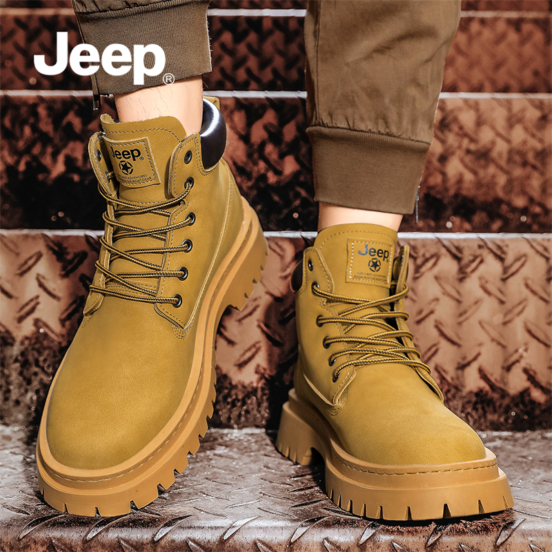 JEEP男鞋冬季马丁靴男2025新款男靴高帮大黄靴男款工装鞋真皮鞋子
