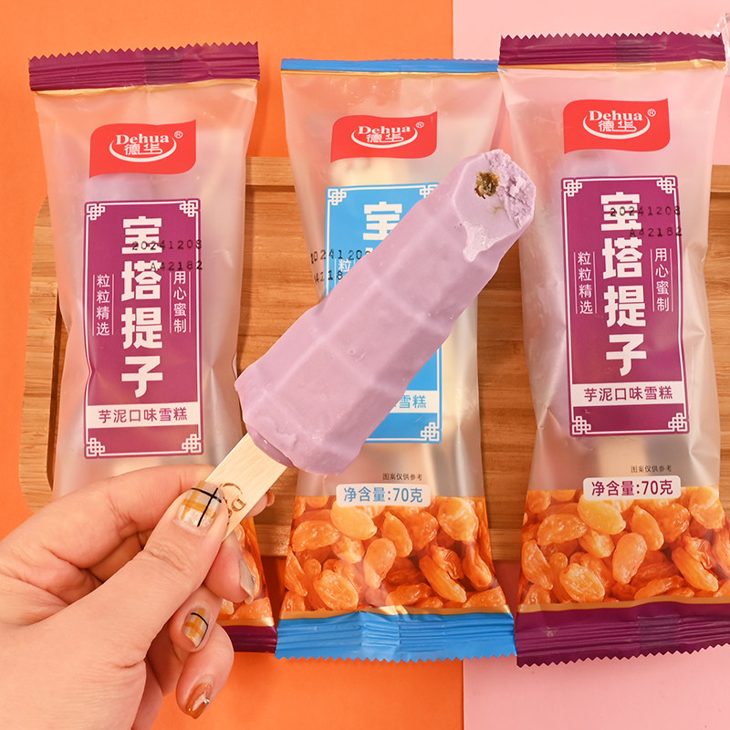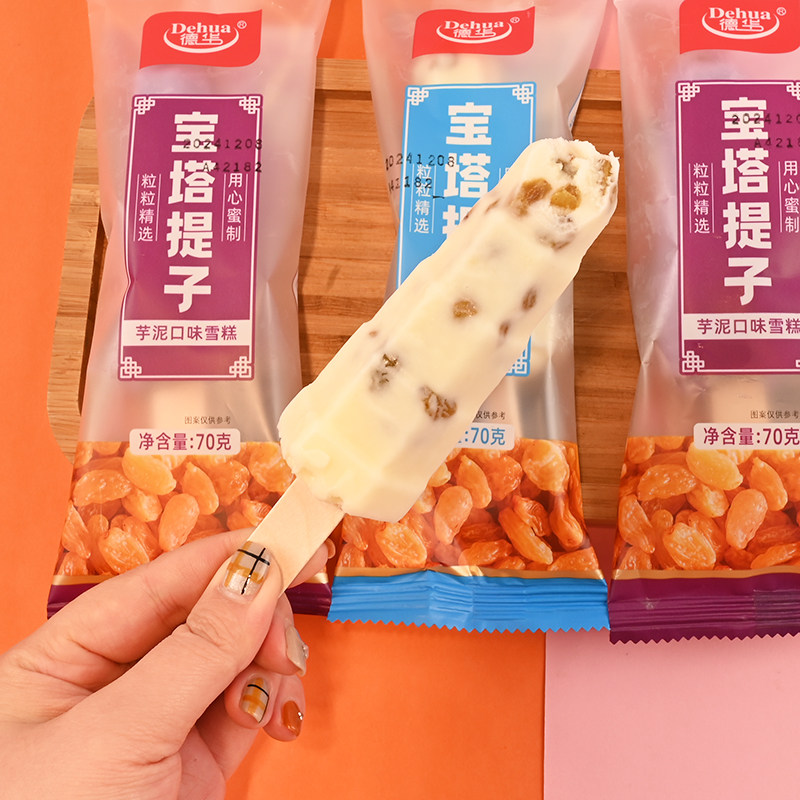 新 德华宝塔提子雪糕70g芋泥牛奶口味经典葡萄干冰淇淋冷饮怀旧棍