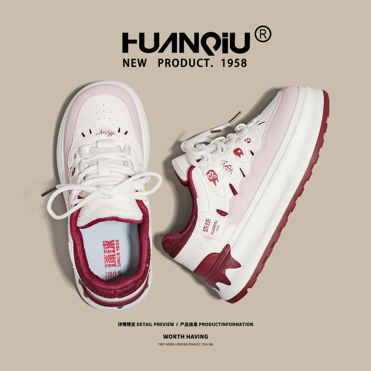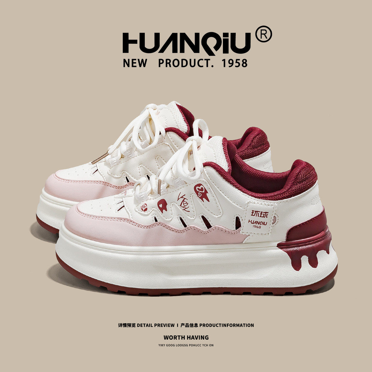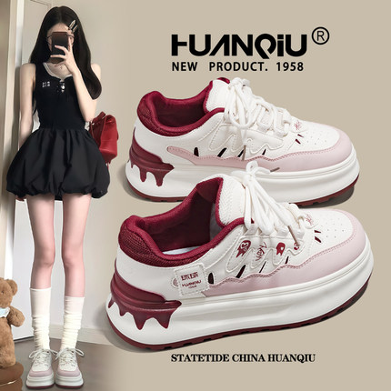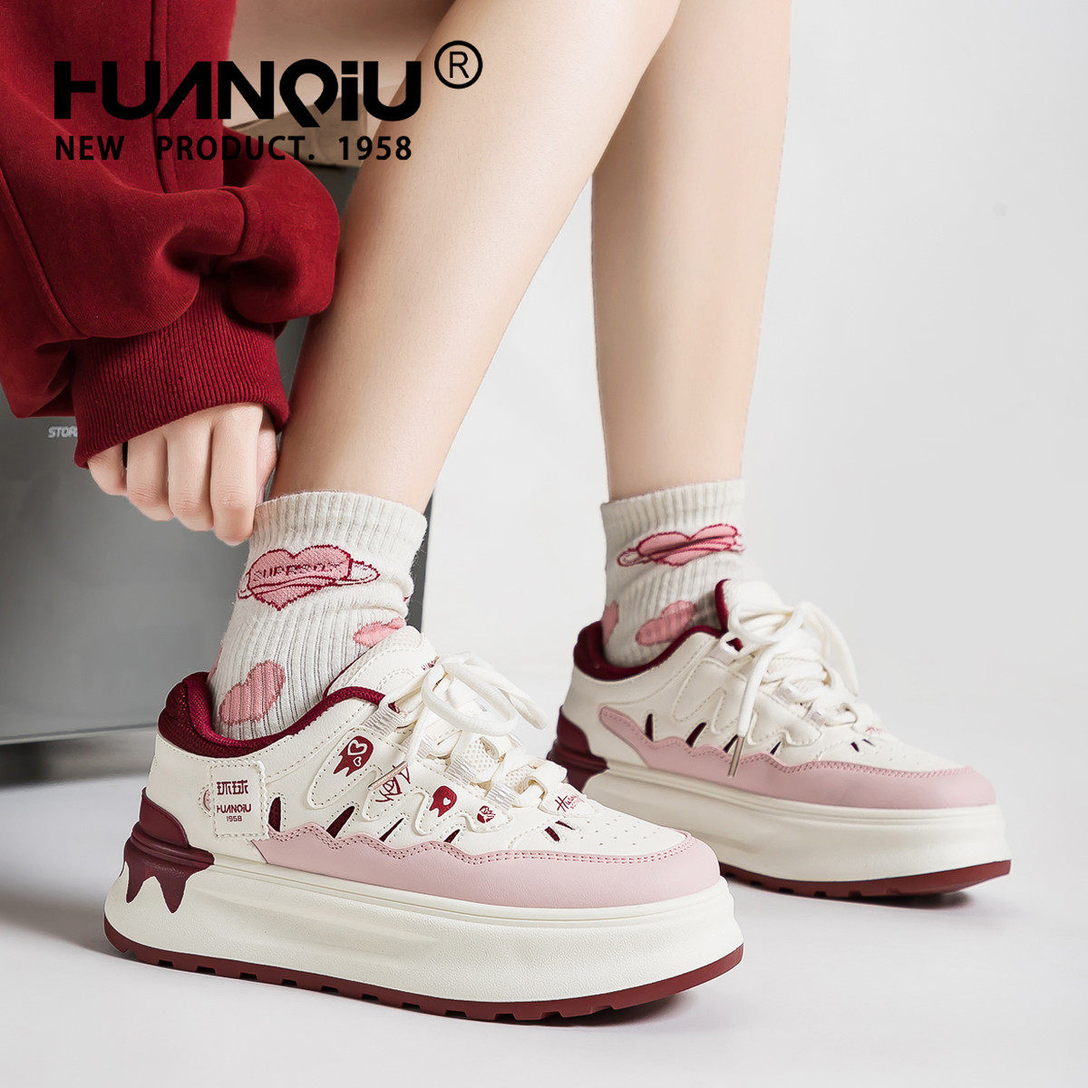 休闲运动鞋增鞋女高尚2025新款春季百搭厚底粉色环球子时萝卜板鞋