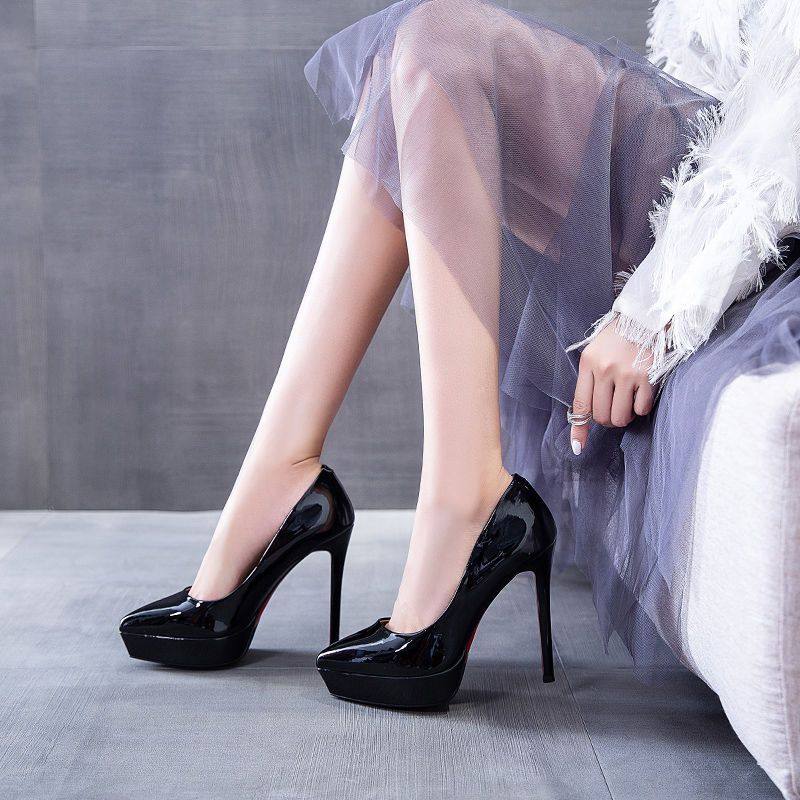 2024春秋季新款高跟鞋12cm细跟防水台尖头单鞋女显瘦工作鞋礼仪鞋