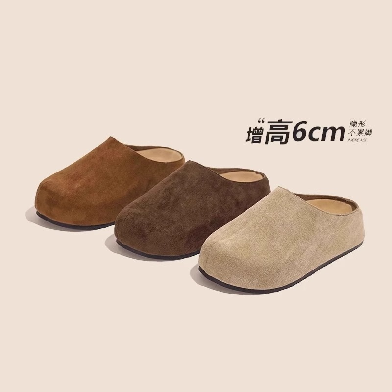三福真皮厚底勃肯鞋女外穿增高2025新款秋季一脚蹬包头半拖博肯鞋