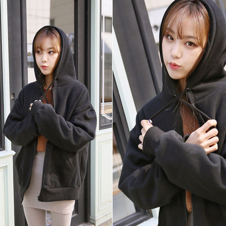 2025秋冬加绒拉链卫衣女开衫韩版学生连帽宽松女外套大码休闲