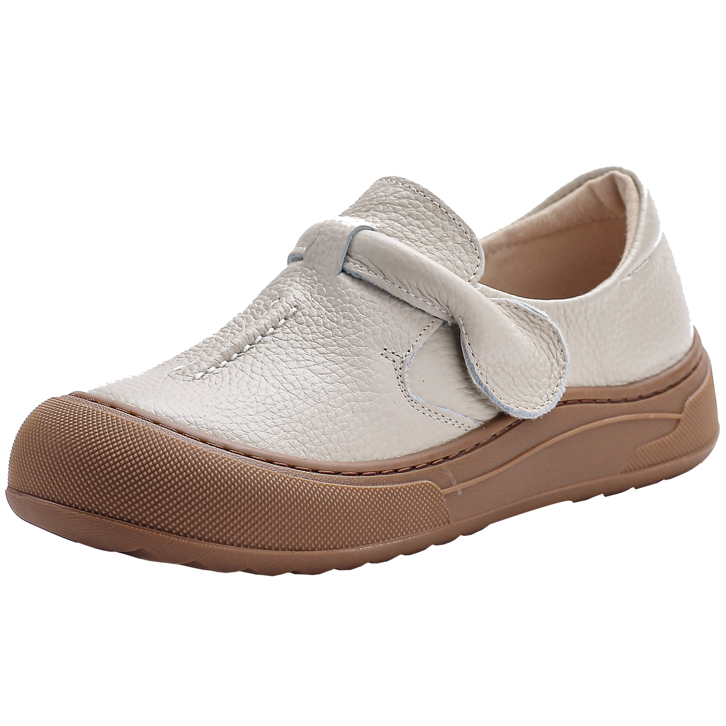 头层牛皮妈妈鞋软底女鞋复古单鞋真皮平底中老年休闲防滑套脚皮鞋
