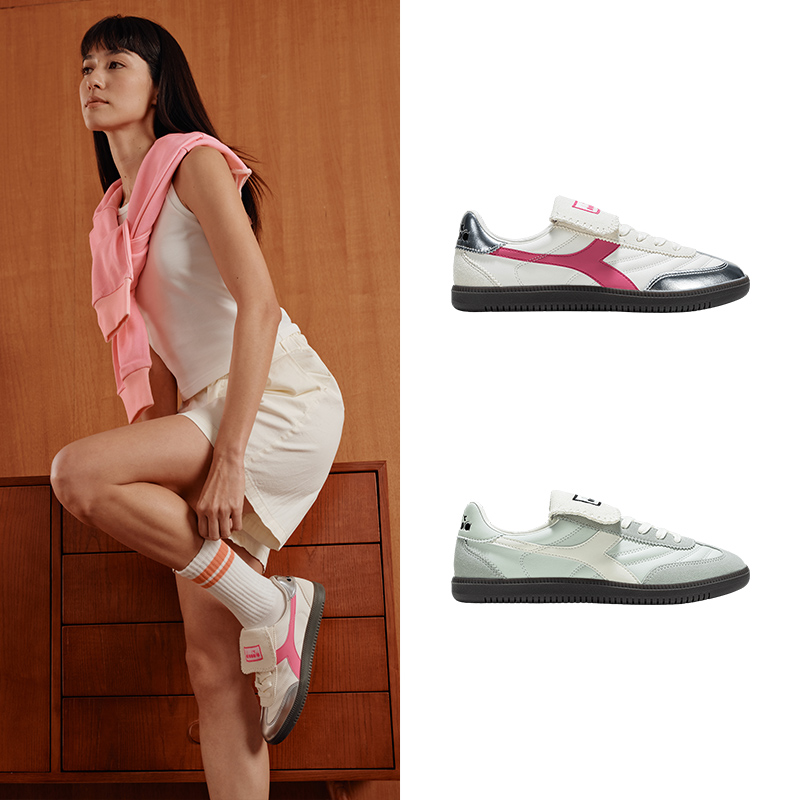「冰淇淋T头鞋」diadora迪亚多纳女粉翻盖鞋舌低帮板鞋Saunter FC