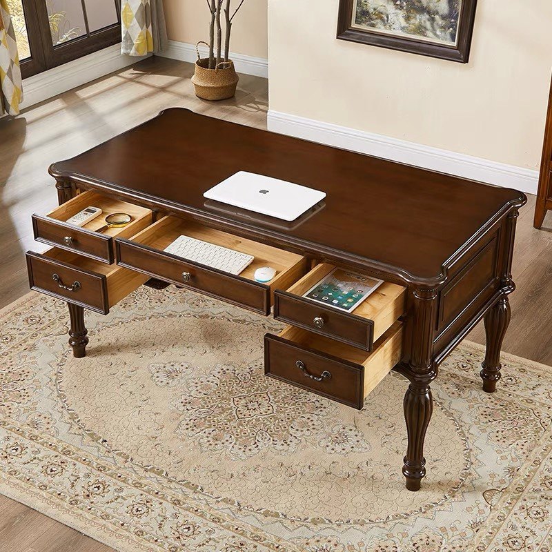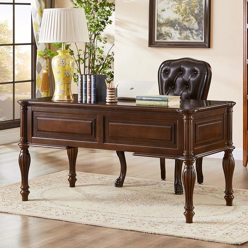 美式实木书桌欧式复古书房办公桌家用写字台电脑桌写字桌书桌