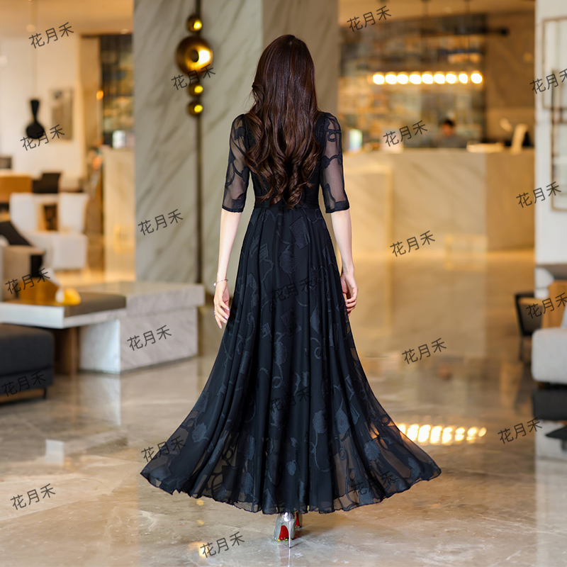 2025年春秋冬V领短袖连衣裙收腰显瘦长裙妈妈款短款小个子沙滩裙