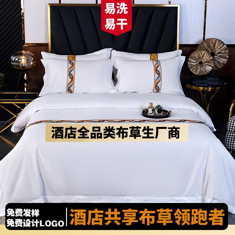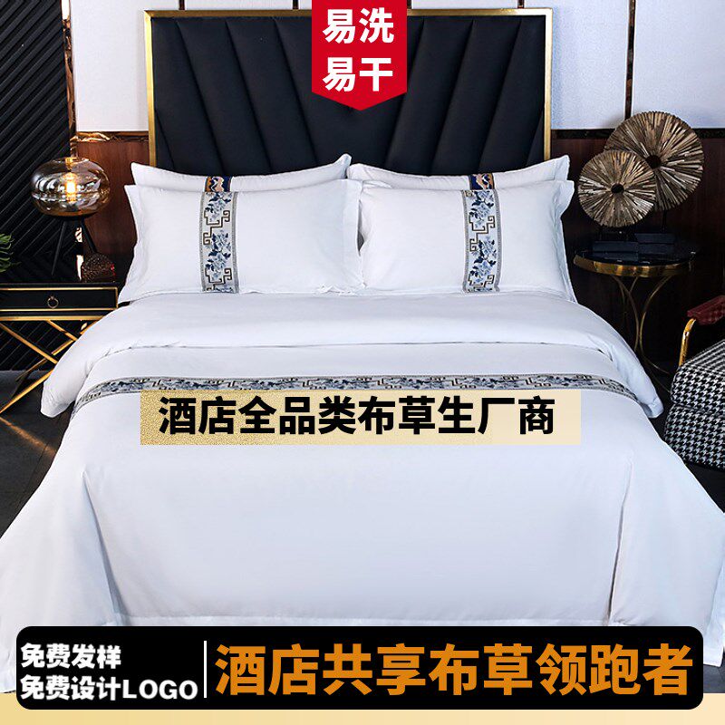 酒店布草宾馆用床上用品民u宿专用白床单被套纯白色被罩床品四件