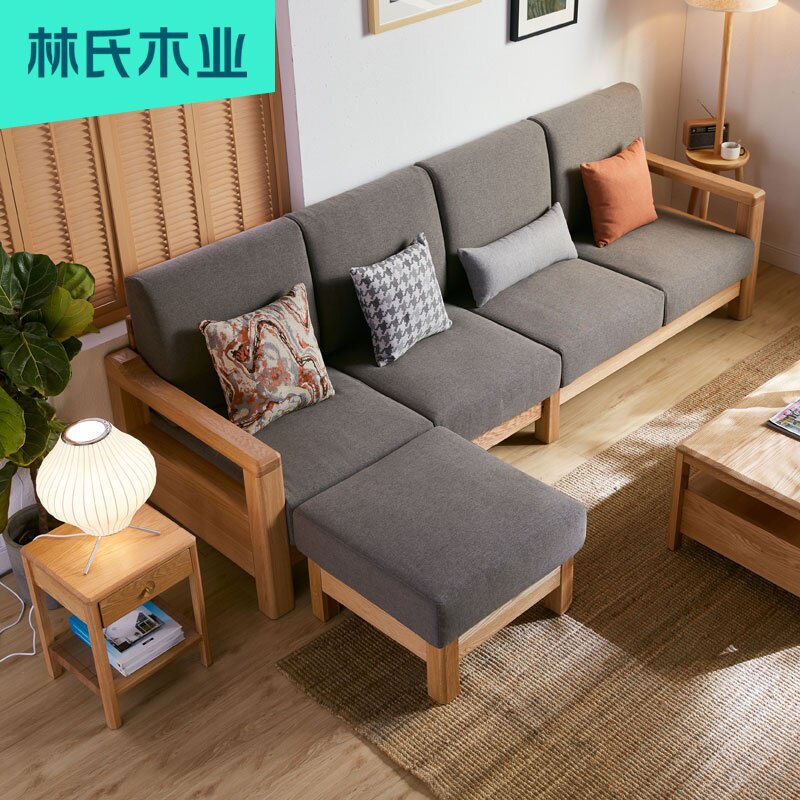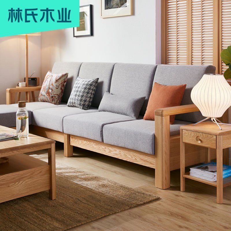 林氏木业北欧实木沙发简约橡木布艺沙发客厅小户型家具新中式CR2K