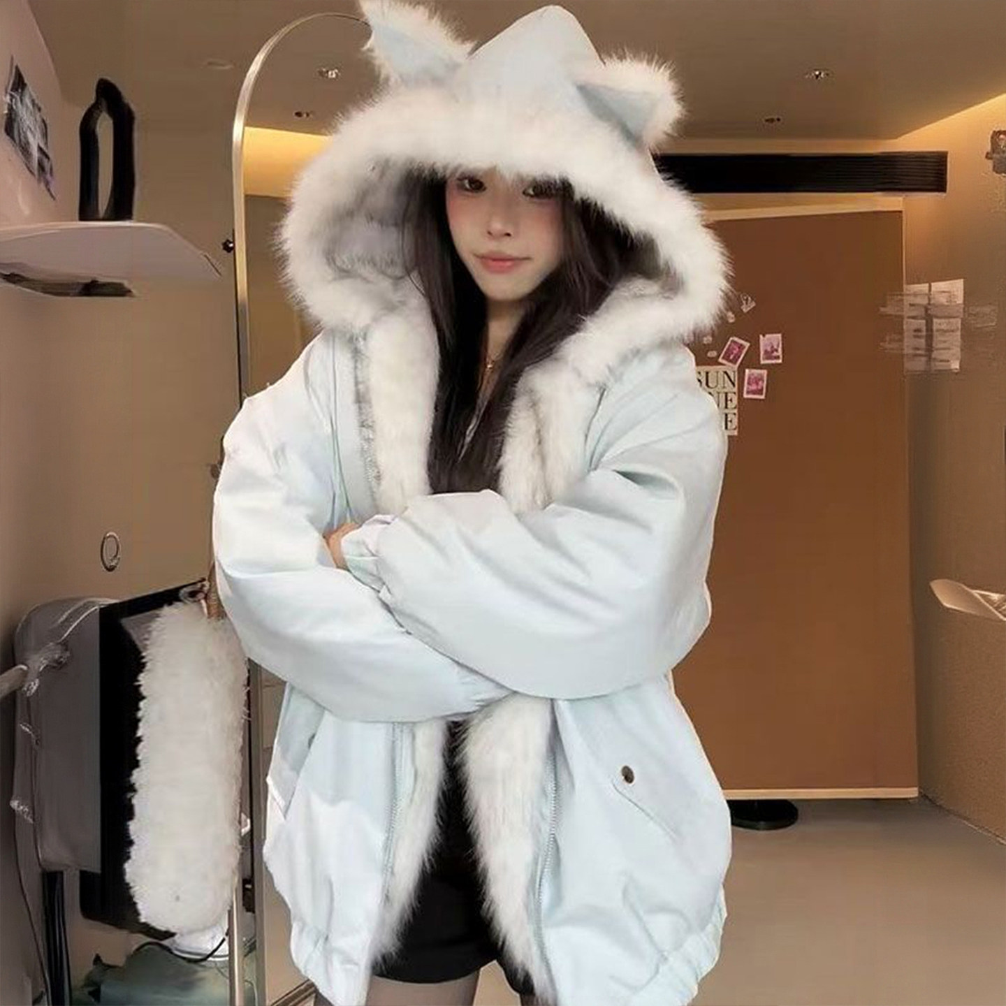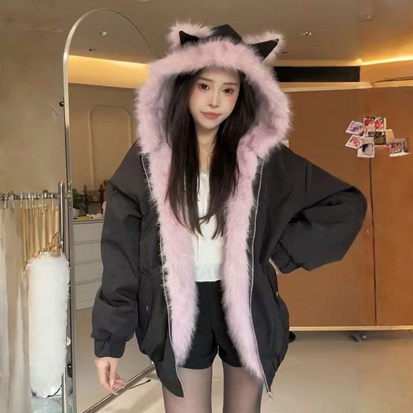 300斤大码女装美式穿搭双面穿保暖棉服女冬季胖mm韩版宽松厚外套
