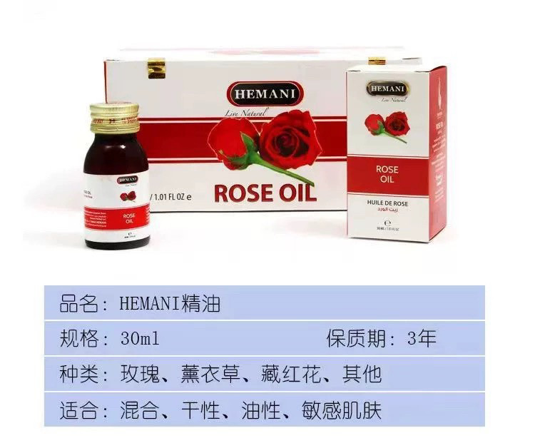 买4赠1HEMANI巴基斯坦原装进口玫瑰藏红花薰衣草精油嫩肤美容