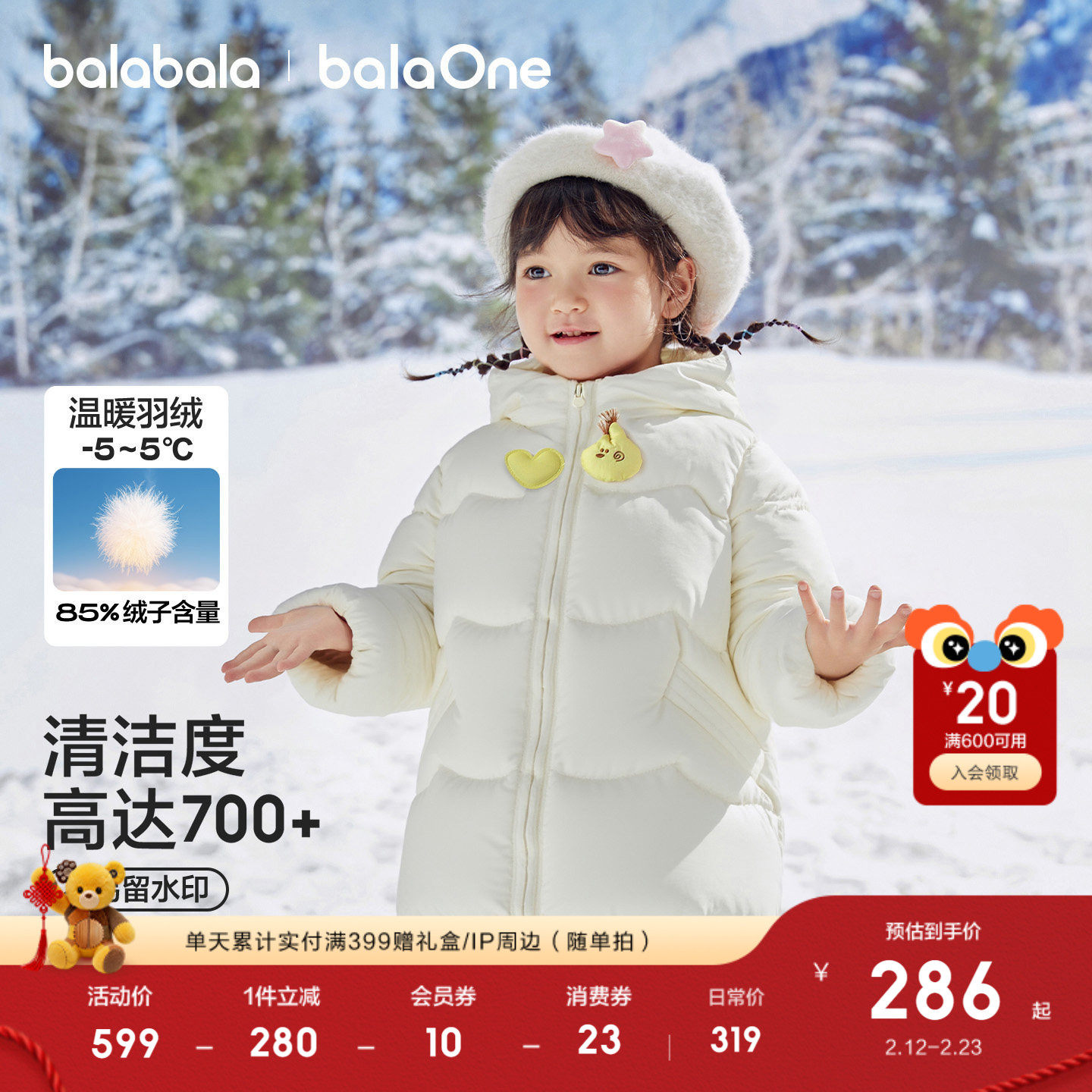 巴拉巴拉羽绒服女童连帽保暖童装