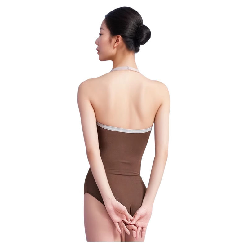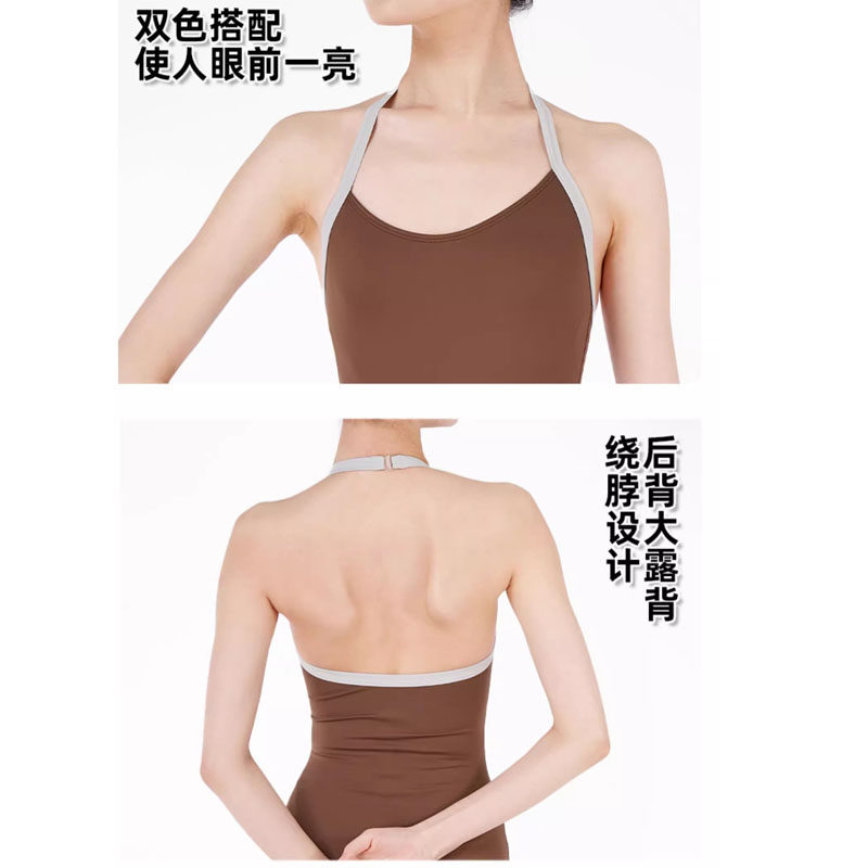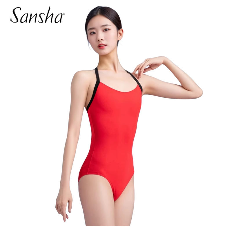 Sansha三沙芭蕾舞舞蹈服 女士 挂脖吊带连体服弹力练功体操形体服