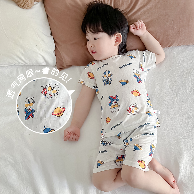 宝宝睡衣薄款网眼竹纤维短袖短裤
